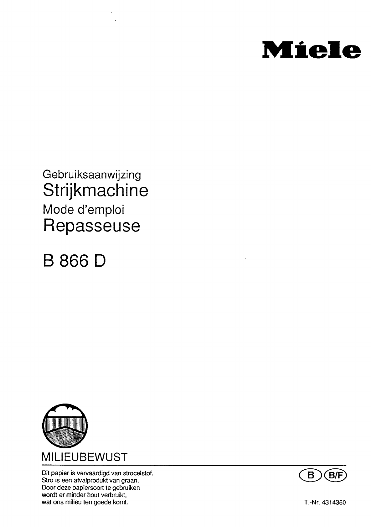 Hier is de Miele B866D (Strijkmachine) gebruikershandleiding. 52 pagina's in taal - met een gewicht van 3.4 Mb. Als u geen antwoorden op uw probleem kunt vinden Vraag het onze community.
