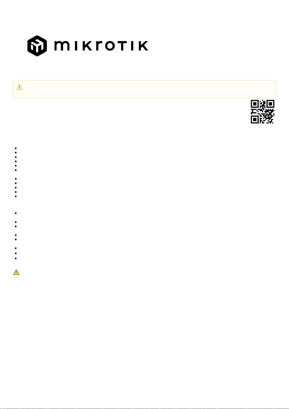 Before you work on any MikroTik equipment, be aware of the hazards involved with electrical circuitry and be familiar with standard practices for preventing