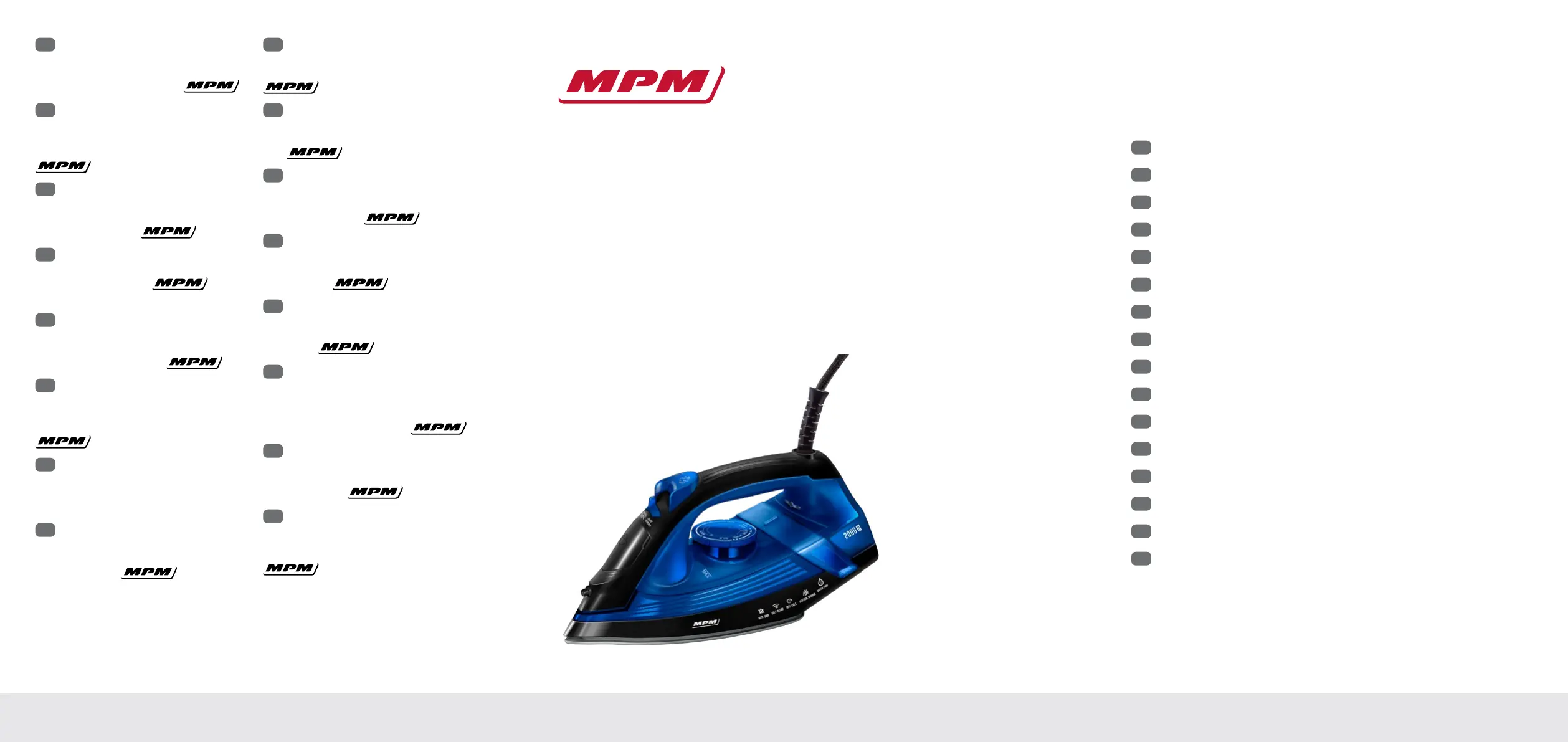Hier is de MPM MZE-25 (Strijkijzer) gebruikershandleiding. 98 pagina's in taal met een gewicht van 12,742,600.0 Mb. Als u geen antwoorden op uw probleem kunt vinden Vraag het onze community.