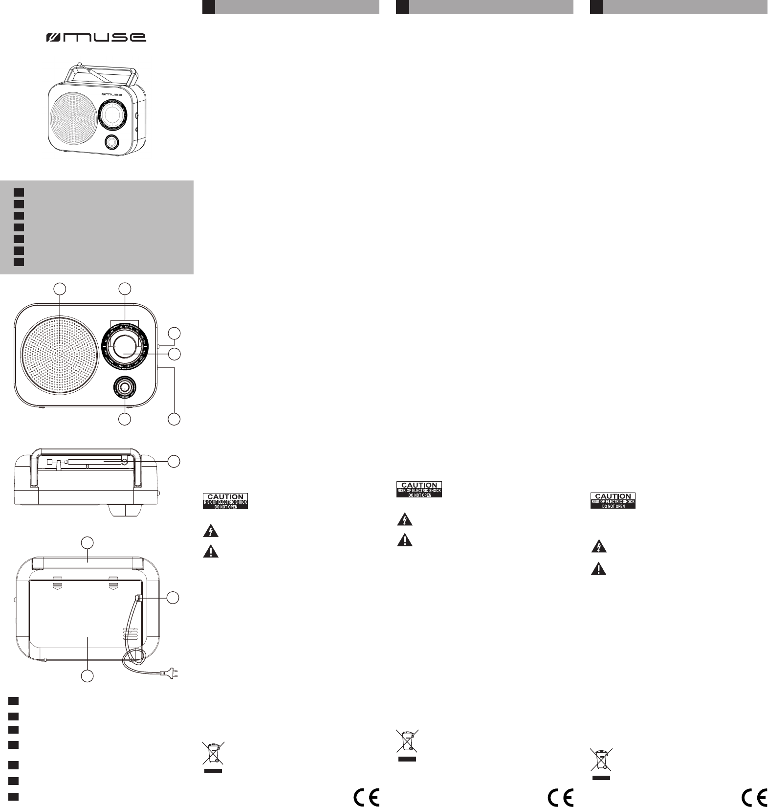 Hier is de Muse M-060 (Radio) gebruikershandleiding. 2 pagina's in taal Deutsch, English, Espanõl, Français, Italiano, Nederlands, Português met een gewicht van 0.6 Mb. Als u geen antwoorden op uw probleem kunt vinden Vraag het onze community.