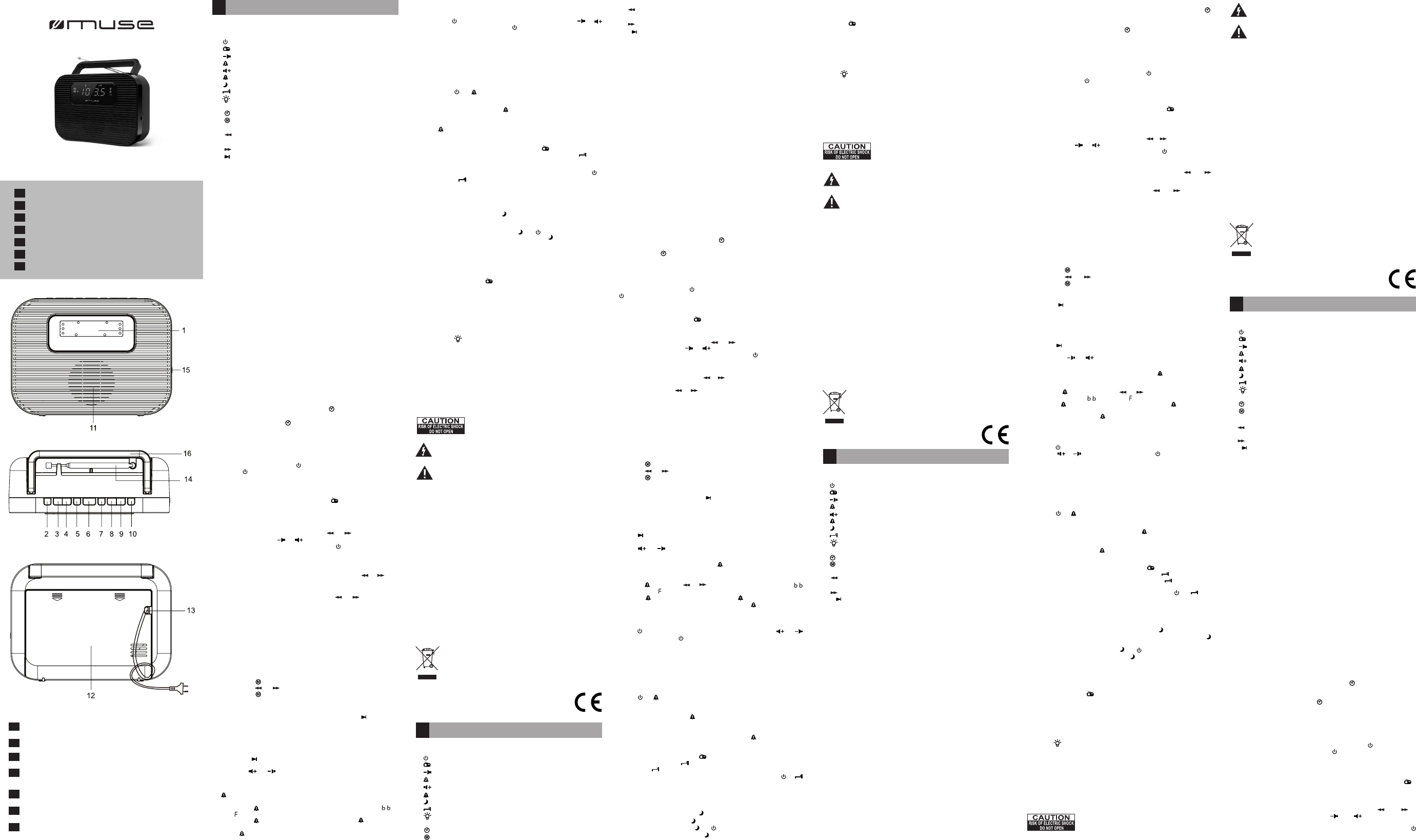 Hier is de Muse M-080 (Radio) gebruikershandleiding. 2 pagina's in taal Deutsch, English, Espanõl, Français, Italiano, Nederlands, Português met een gewicht van 0.7 Mb. Als u geen antwoorden op uw probleem kunt vinden Vraag het onze community.