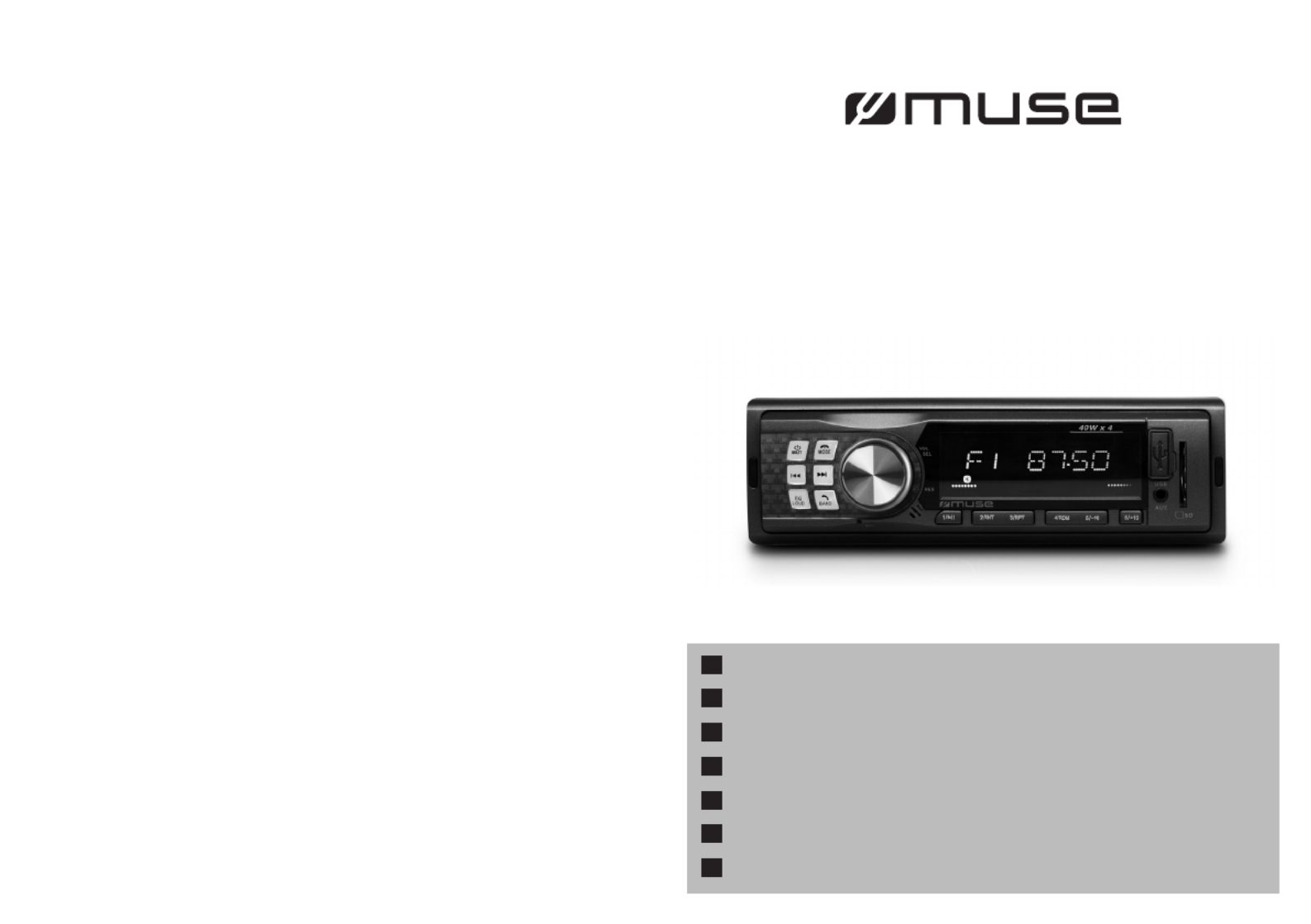Hier is de Muse M-195 BT (Autoradio) gebruikershandleiding. 36 pagina's in taal Nederlands met een gewicht van 3.0 Mb. Als u geen antwoorden op uw probleem kunt vinden Vraag het onze community.