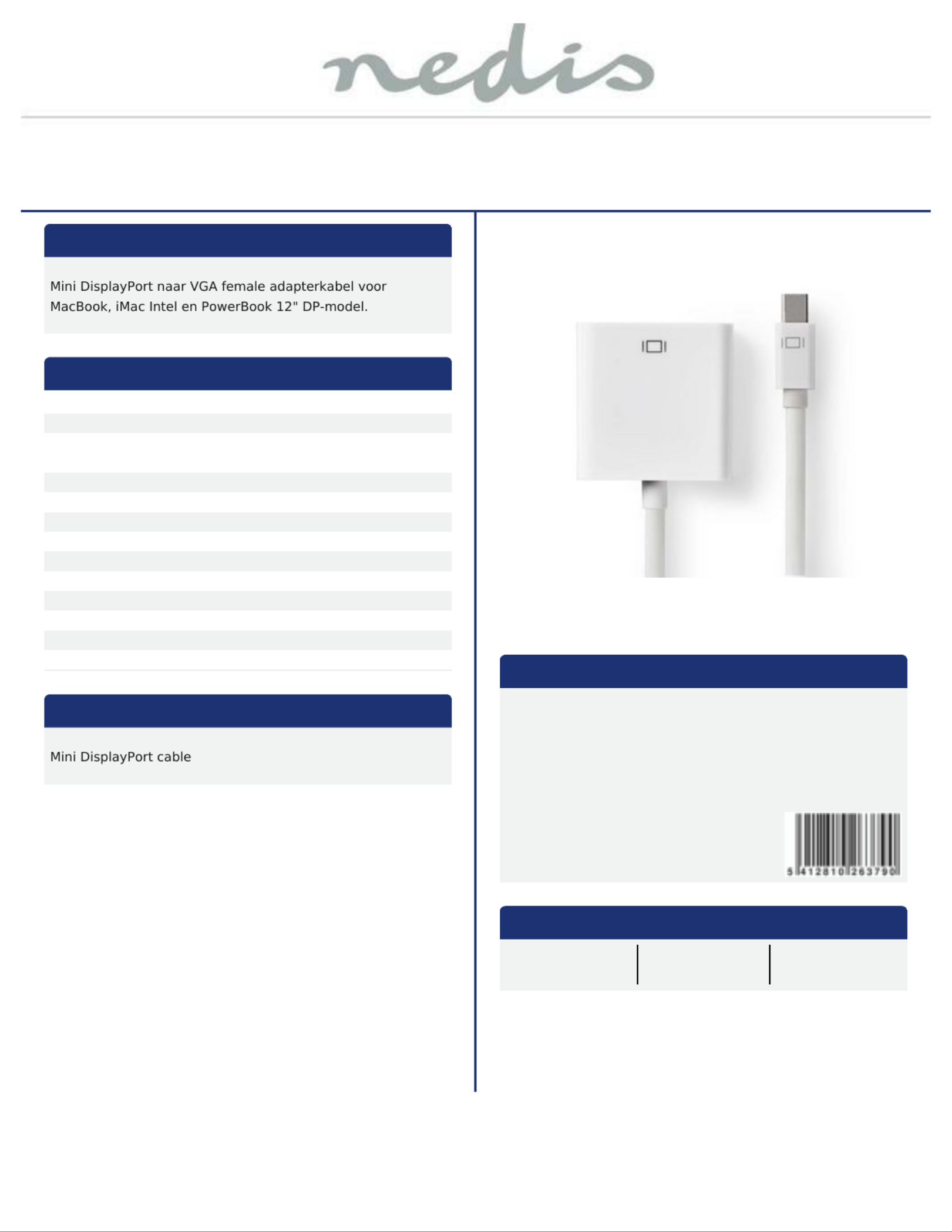 Mini-DisplayPort - VGA-kabel | Mini-DisplayPort male - VGA