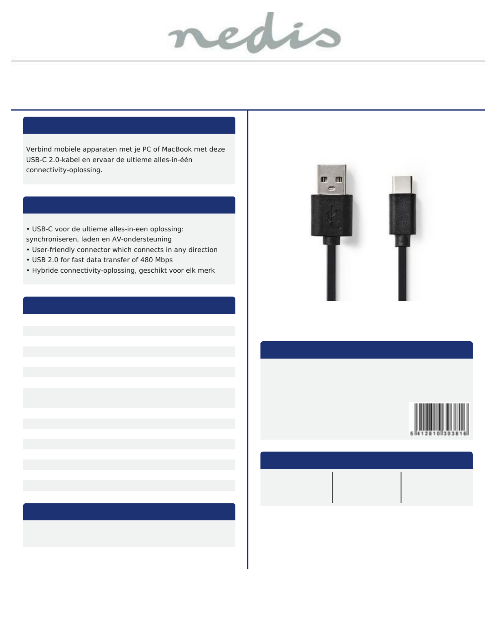 Productomschrijving: USB 2.0-Kabel | Type-C™ Male - A
