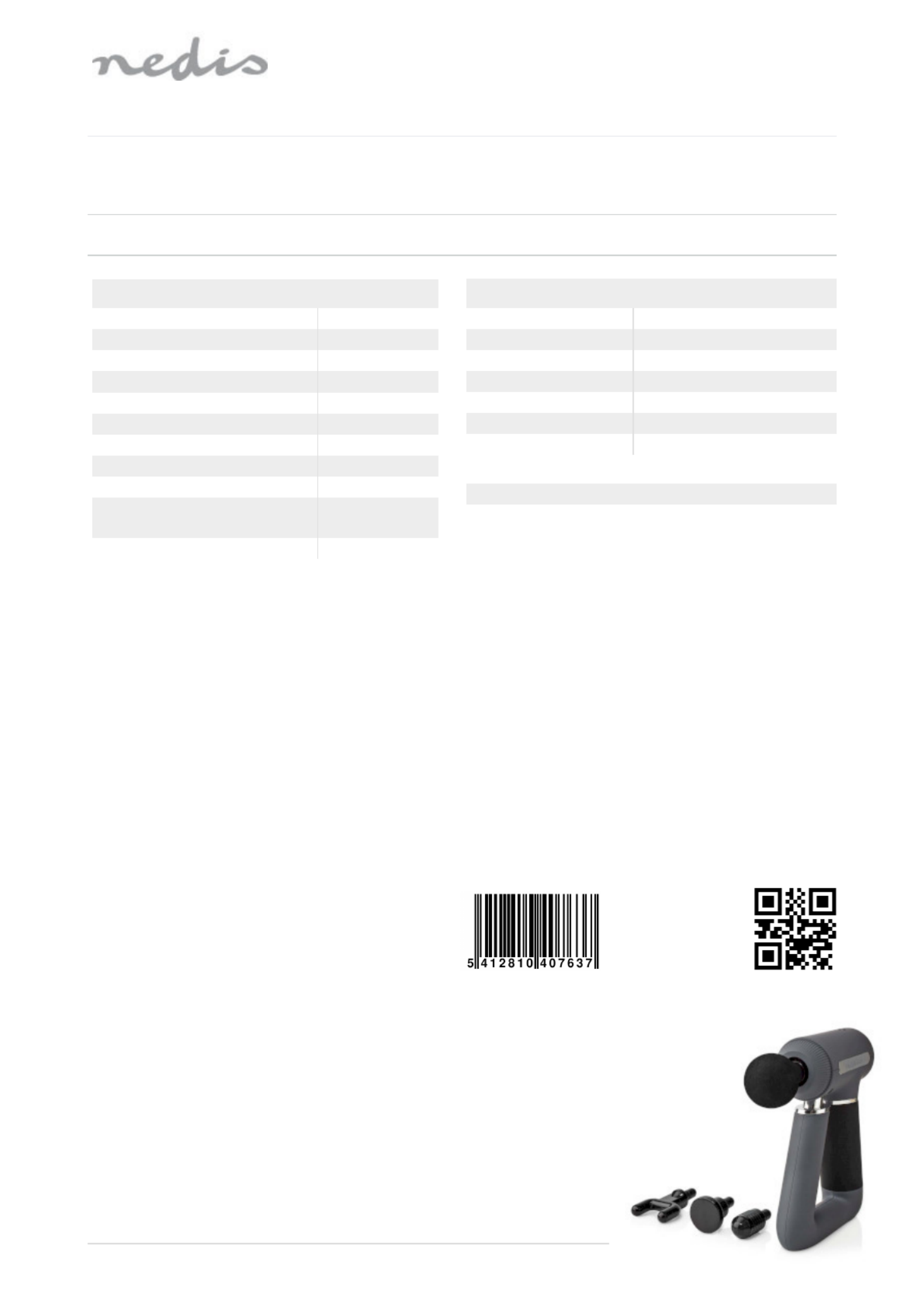 Hier is de Nedis HCMSG300 (Massage apparaat) gebruikershandleiding. 1 pagina's in taal Nederlands met een gewicht van 0.1 Mb. Als u geen antwoorden op uw probleem kunt vinden Vraag het onze community.