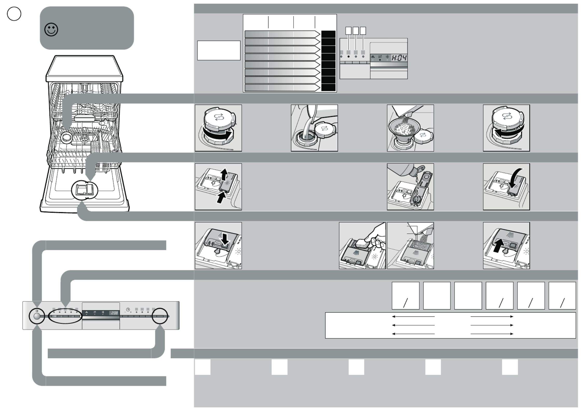 | Afwasprogramma's: | Auto 45-65°C, Eco, Intensive, Quick |