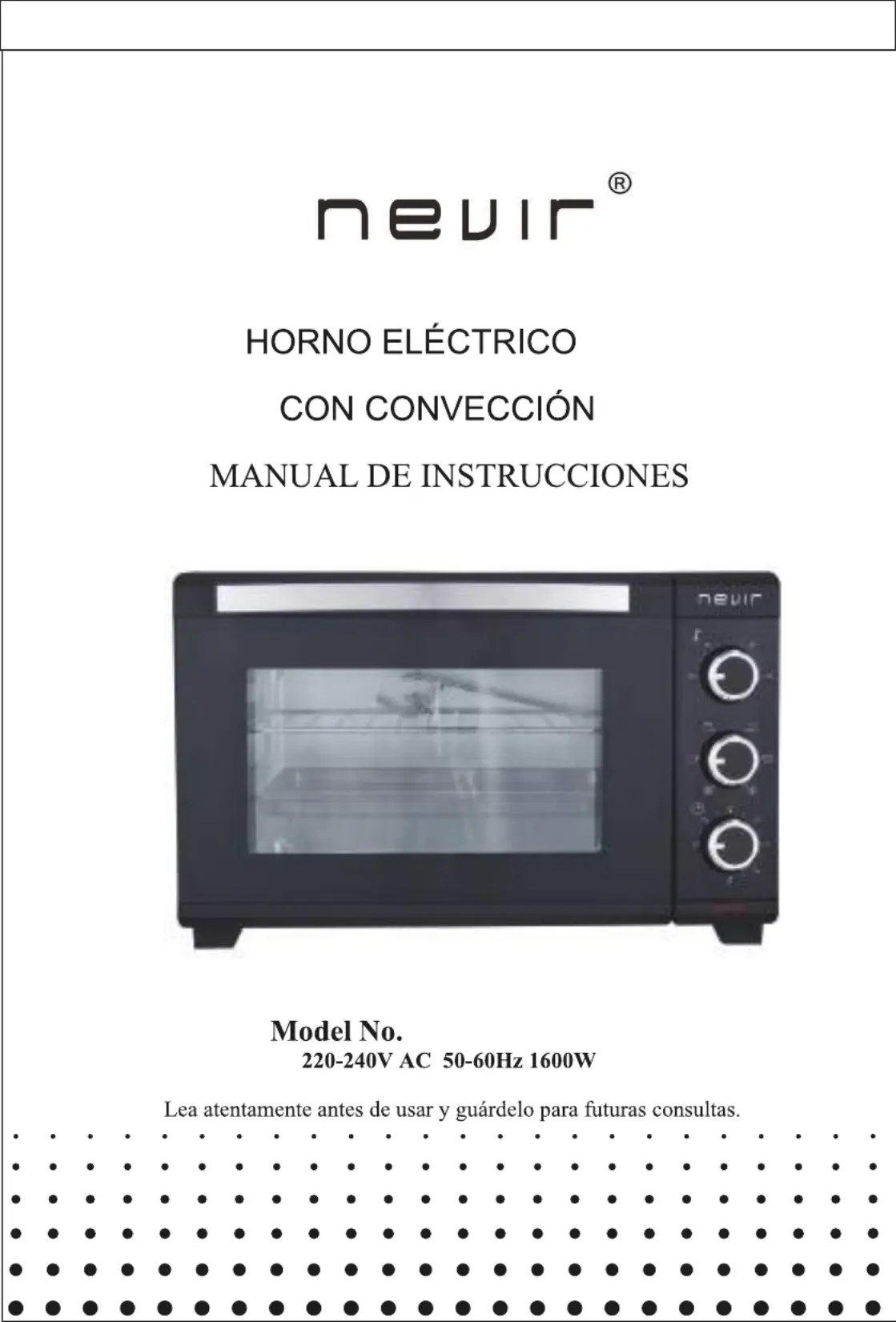 Hier is de Nevir NVR-9847HC-25L (Oven) gebruikershandleiding. 11 pagina's in taal met een gewicht van 1,369,090.0 Mb. Als u geen antwoorden op uw probleem kunt vinden Vraag het onze community.