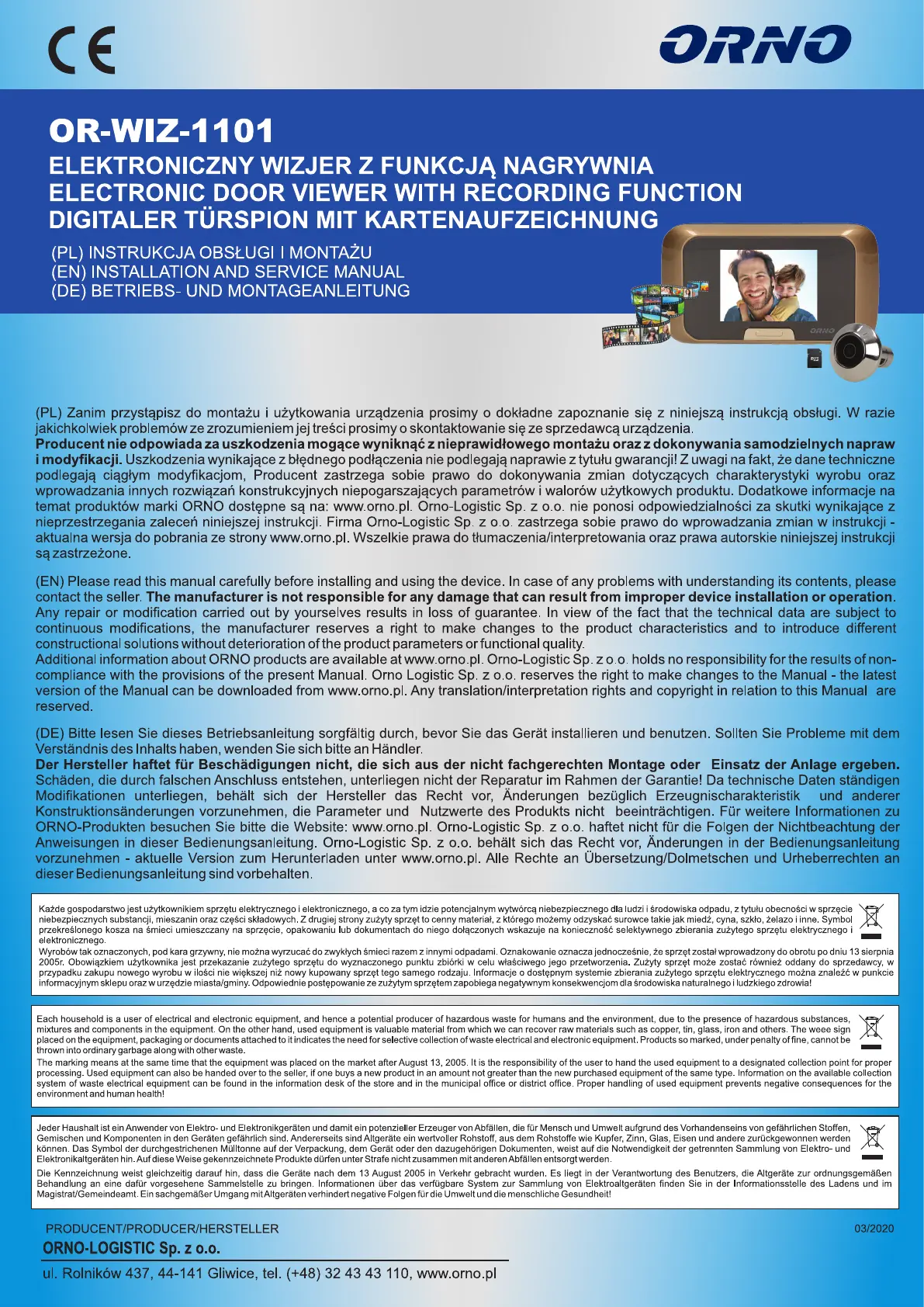 Hier is de ORNO OR-WIZ-1101 (Deurbel) gebruikershandleiding. 8 pagina's in taal Engels met een gewicht van 3,507,400.0 Mb. Als u geen antwoorden op uw probleem kunt vinden Vraag het onze community.