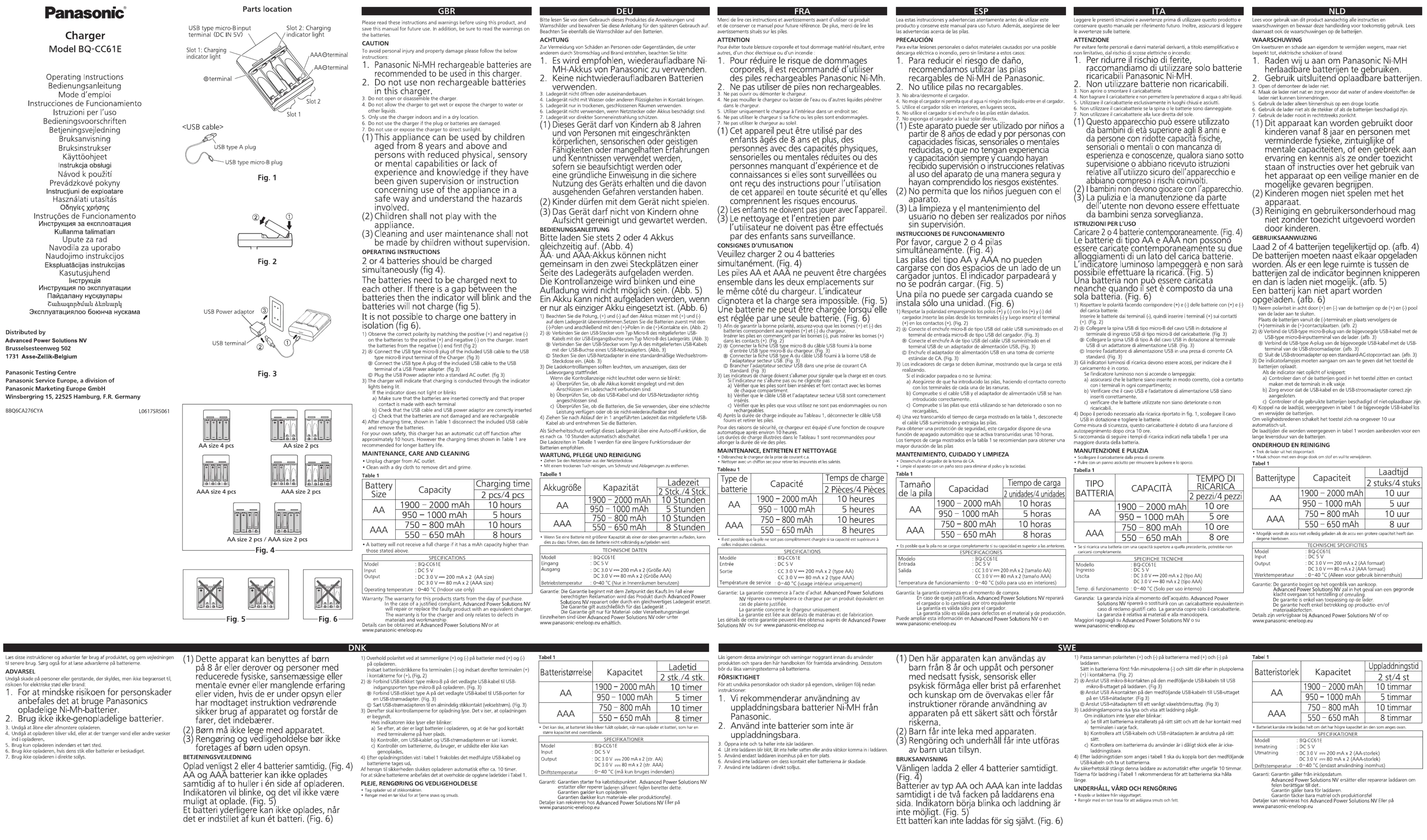 Hier is de Panasonic BQ-CC61 (Batterij-oplader) gebruikershandleiding. 4 pagina's in taal met een gewicht van 5,843,080.0 Mb. Als u geen antwoorden op uw probleem kunt vinden Vraag het onze community.
