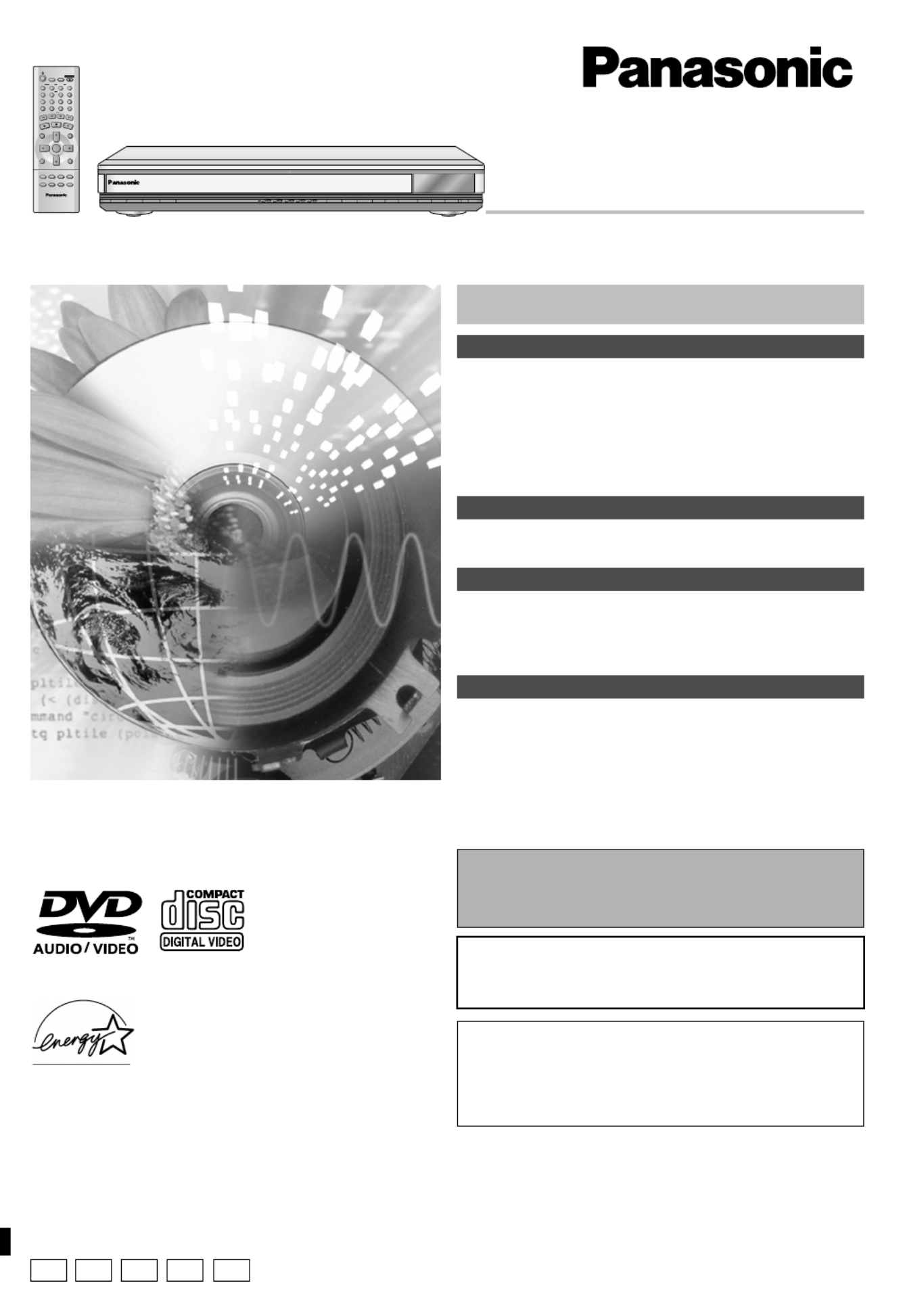 Hier is de Panasonic DVD-F61 (DVD speler) gebruikershandleiding. 24 pagina's in taal Engels met een gewicht van 5.0 Mb. Als u geen antwoorden op uw probleem kunt vinden Vraag het onze community.