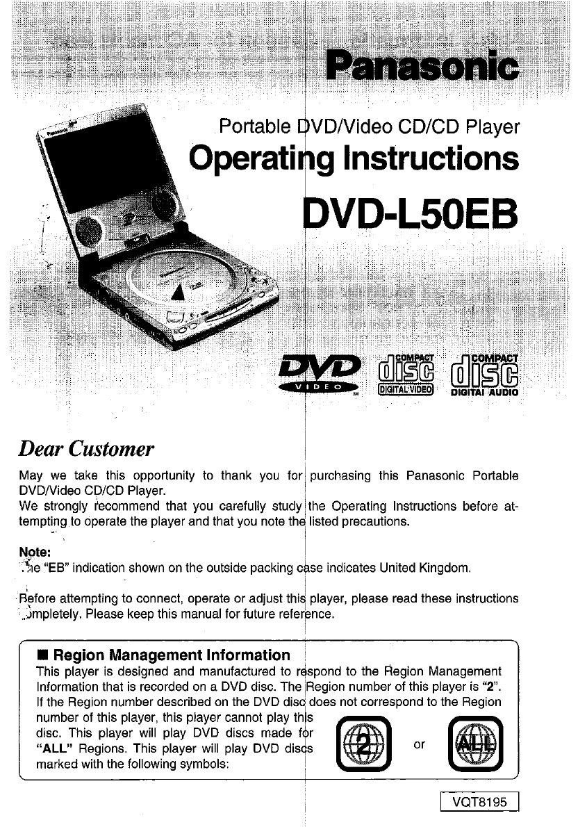 Hier is de Panasonic dvd l10ec (DVD speler) gebruikershandleiding. 58 pagina's in taal English met een gewicht van 3.4 Mb. Als u geen antwoorden op uw probleem kunt vinden Vraag het onze community.