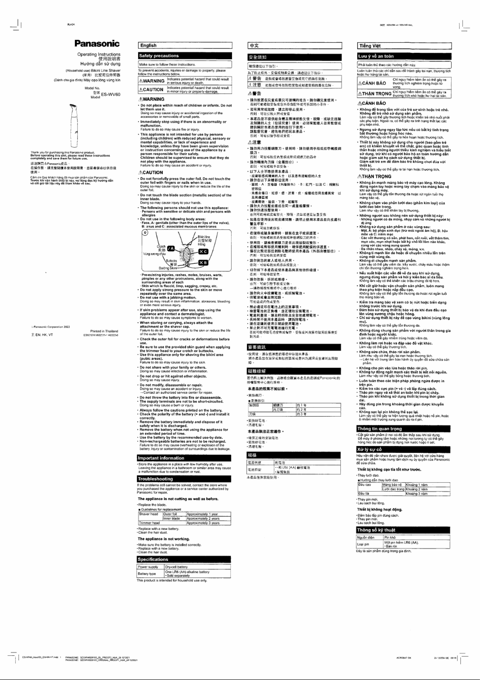 Hier is de Panasonic ES-WV60 (Ladyshave) gebruikershandleiding. 4 pagina's in taal Engels met een gewicht van 1.1 Mb. Als u geen antwoorden op uw probleem kunt vinden Vraag het onze community.