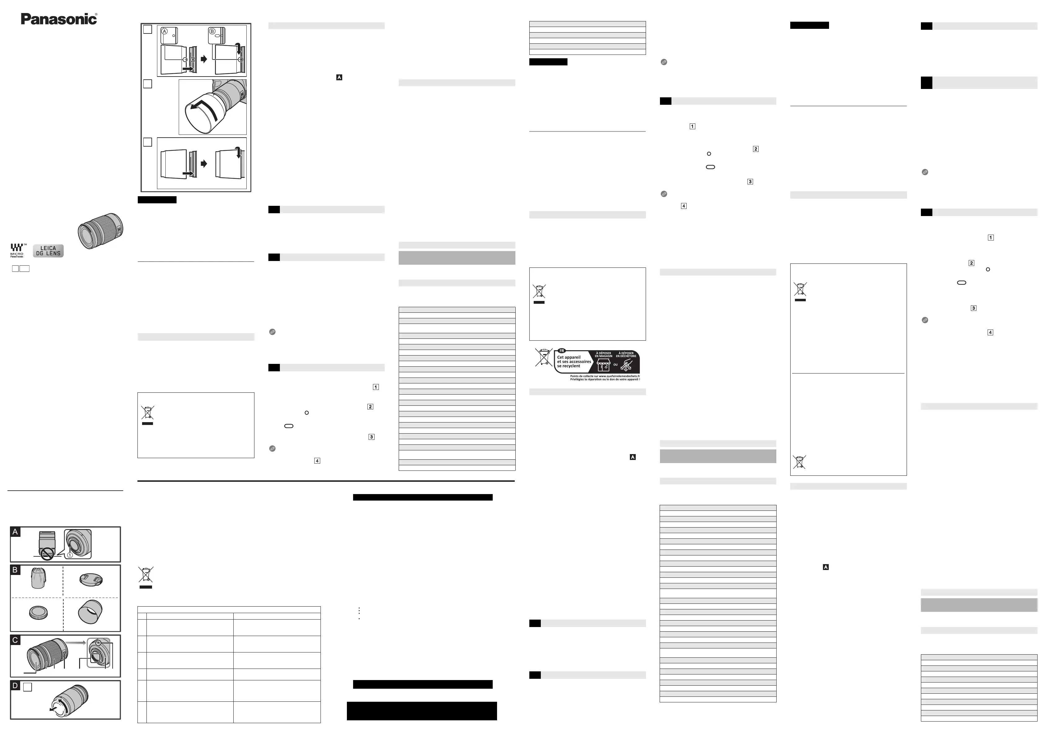 Panasonic Leica DG Vario-Elmarit 35-100mm F2.8 O.I.S Lens Handleiding