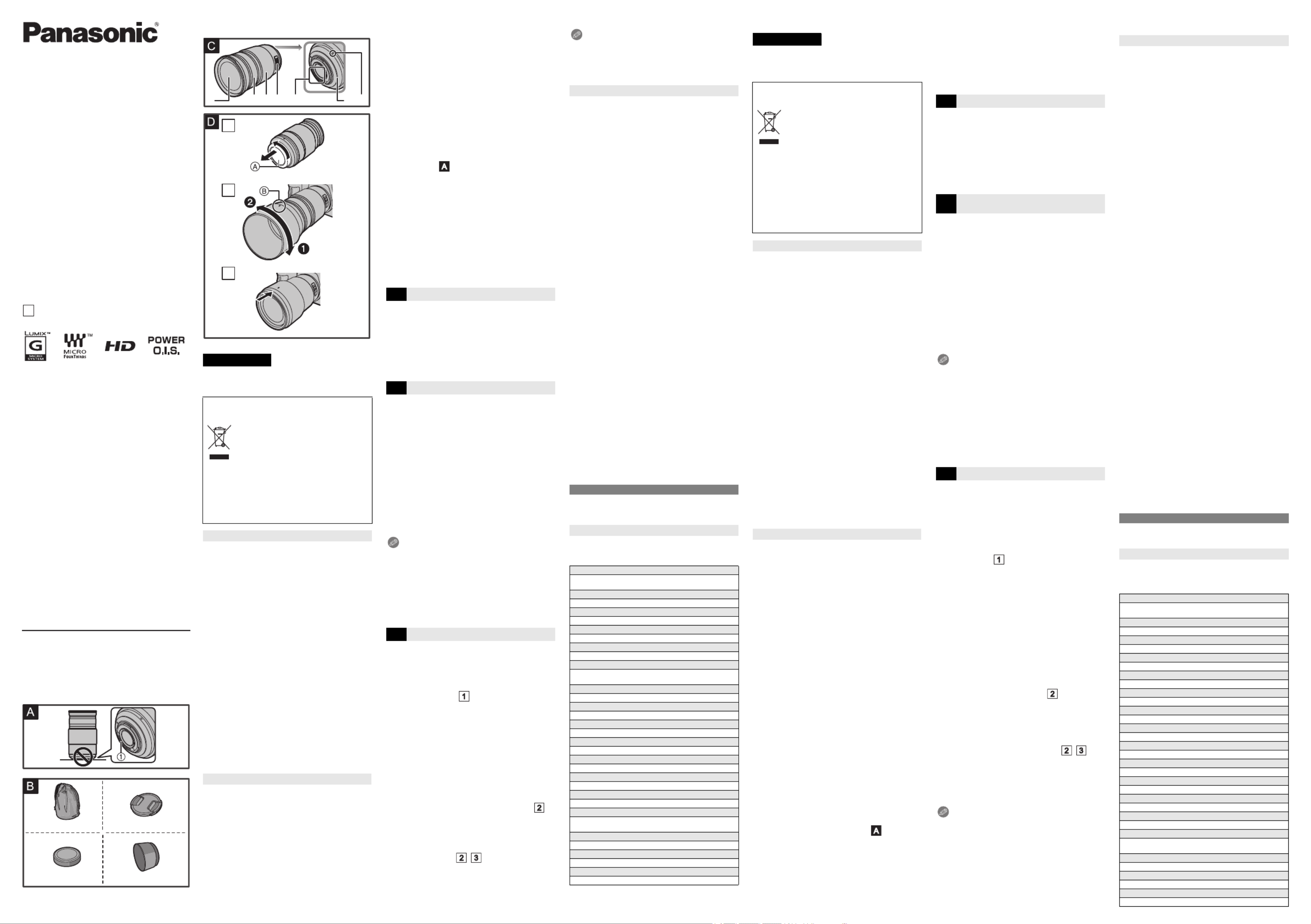 Hier is de Panasonic Lumix H-FSA100300E (Lens) gebruikershandleiding. 1 pagina's in taal Engels met een gewicht van 1.0 Mb. Als u geen antwoorden op uw probleem kunt vinden Vraag het onze community.