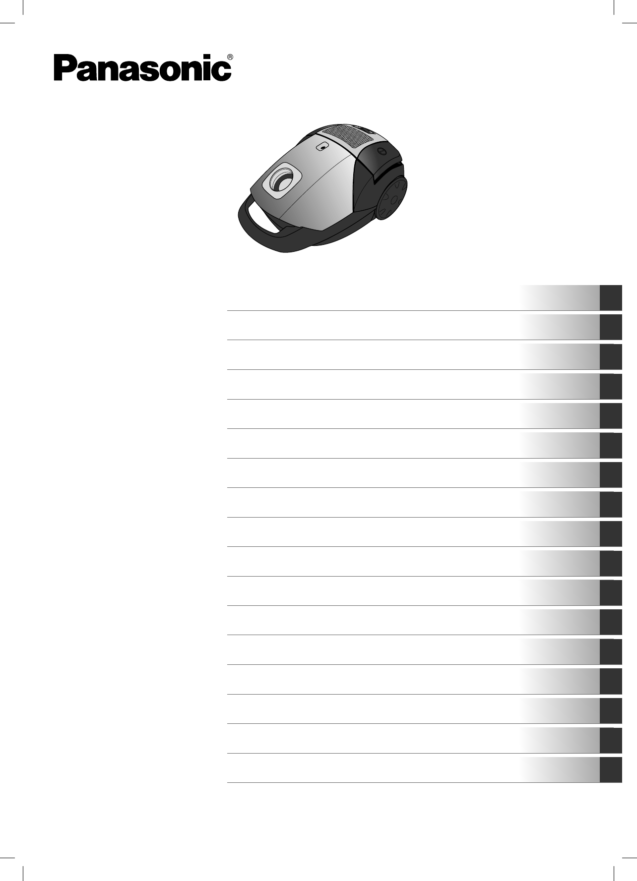 Hier is de Panasonic MC-CG522 (Stofzuiger) gebruikershandleiding. 48 pagina's in taal Dansk, Deutsch, English, Espanõl, Français, Italiano, Nederlands, Norsk, Polski, Português, Suomi, Svenska met een gewicht van 5.0 Mb. Als u geen antwoorden op uw probleem kunt vinden Vraag het onze community.