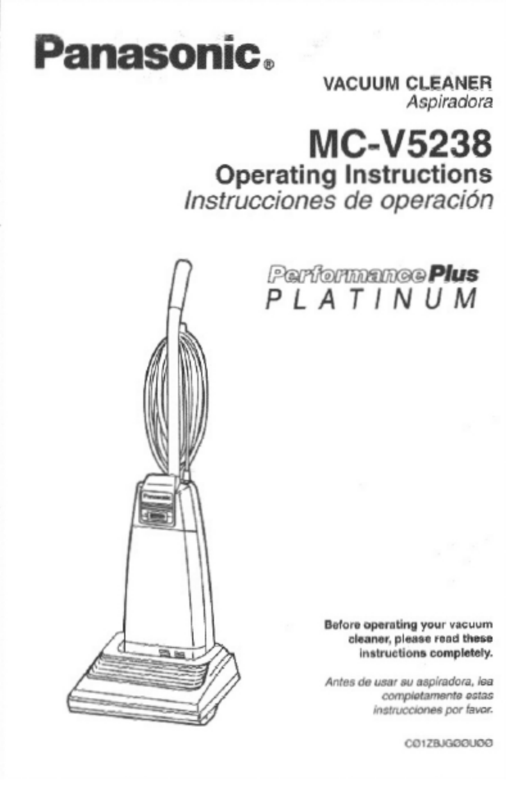 Hier is de Panasonic MC-V5238 (Stofzuigers) gebruikershandleiding. 24 pagina's in taal met een gewicht van 1.2 Mb. Als u geen antwoorden op uw probleem kunt vinden Vraag het onze community.