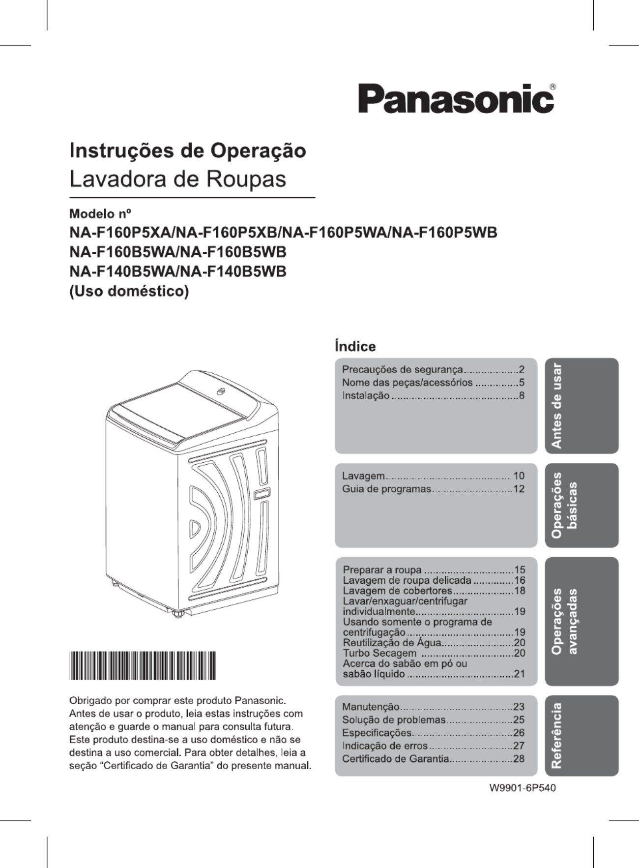 Hier is de Panasonic NA-F160P5WA (Wasmachine) gebruikershandleiding. 32 pagina's in taal - met een gewicht van 3.7 Mb. Als u geen antwoorden op uw probleem kunt vinden Vraag het onze community.