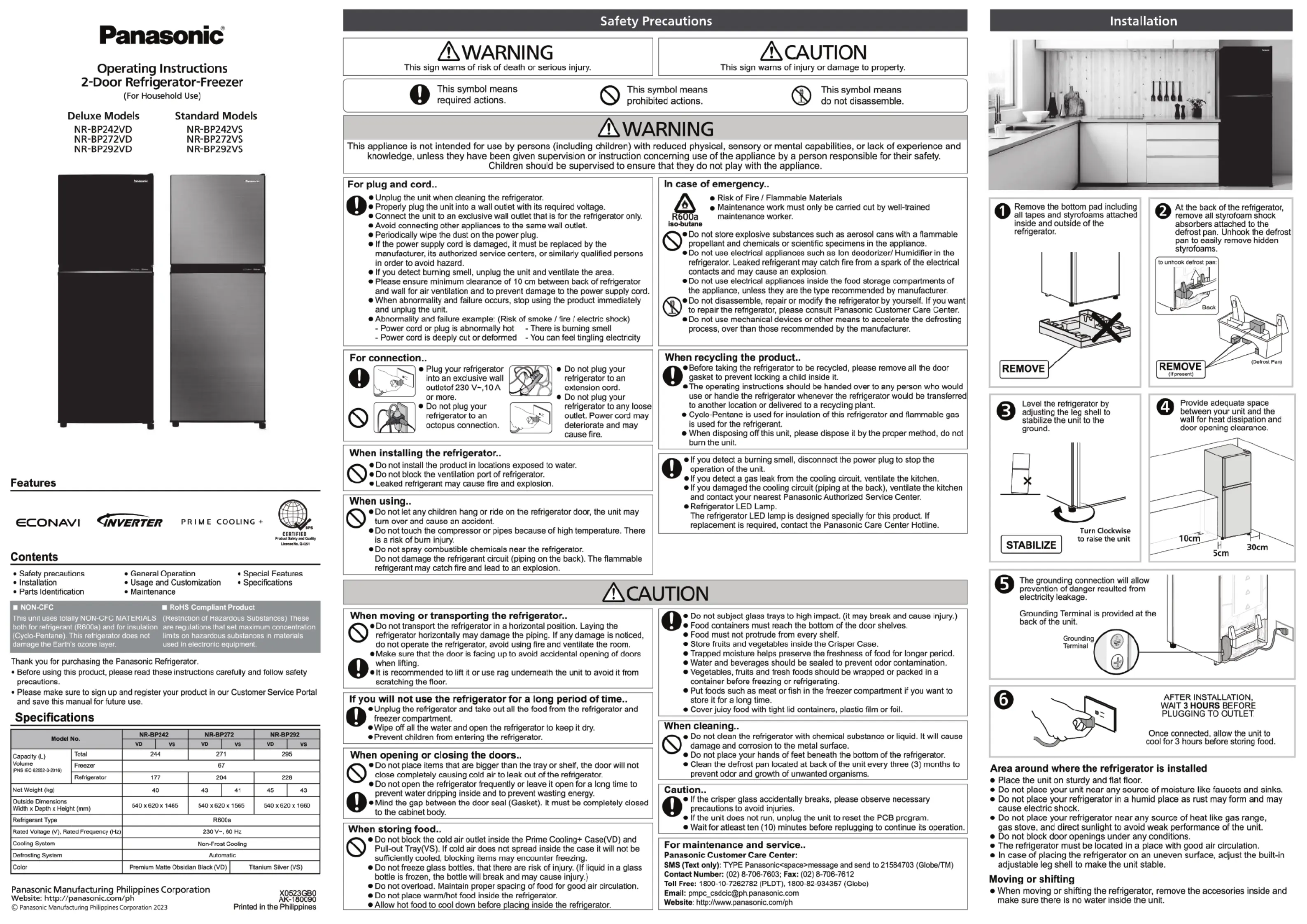 Panasonic NR-BP292VD Handleiding