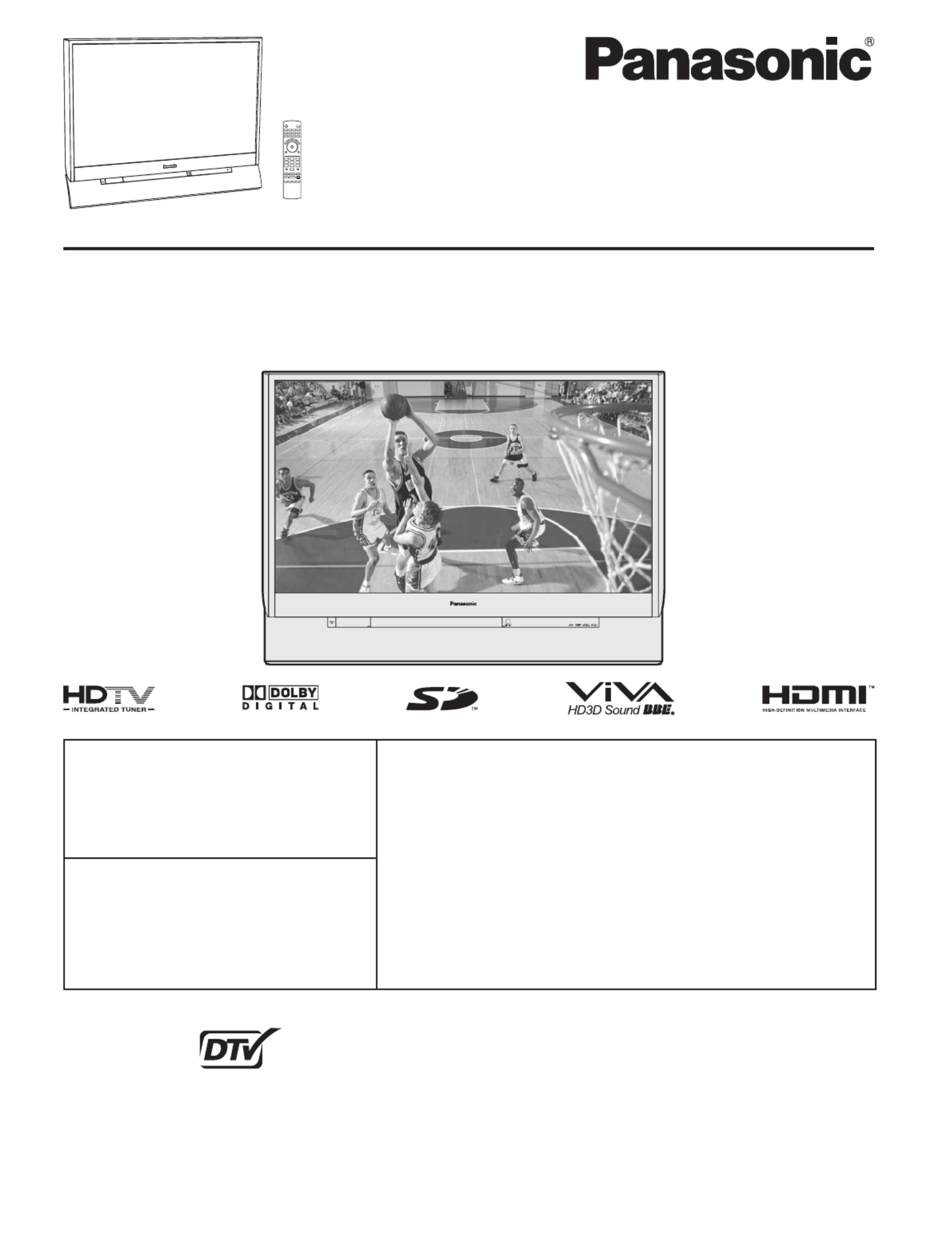 Hier is de Panasonic PT-44LCX65 (Televisie) gebruikershandleiding. 80 pagina's in taal Engels met een gewicht van 7.8 Mb. Als u geen antwoorden op uw probleem kunt vinden Vraag het onze community.