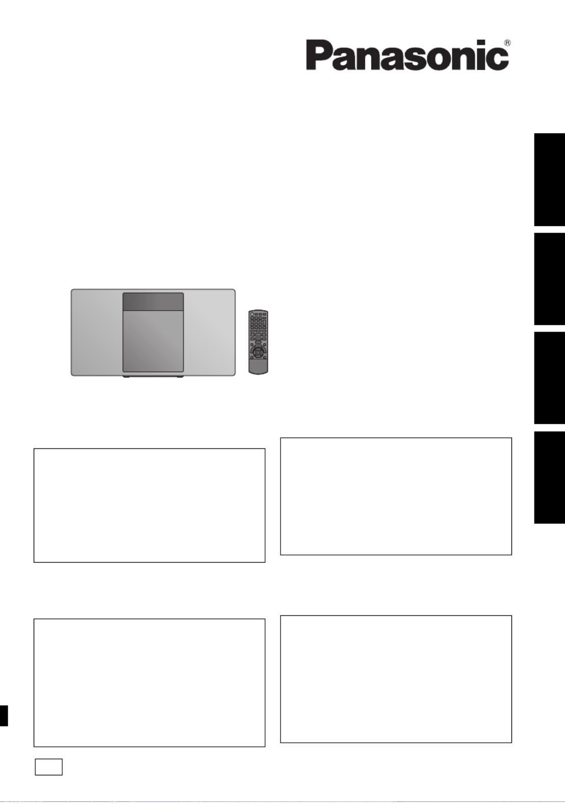 Hier is de Panasonic SC-HC410EG (Stereosets) gebruikershandleiding. 84 pagina's in taal met een gewicht van 3.1 Mb. Als u geen antwoorden op uw probleem kunt vinden Vraag het onze community.