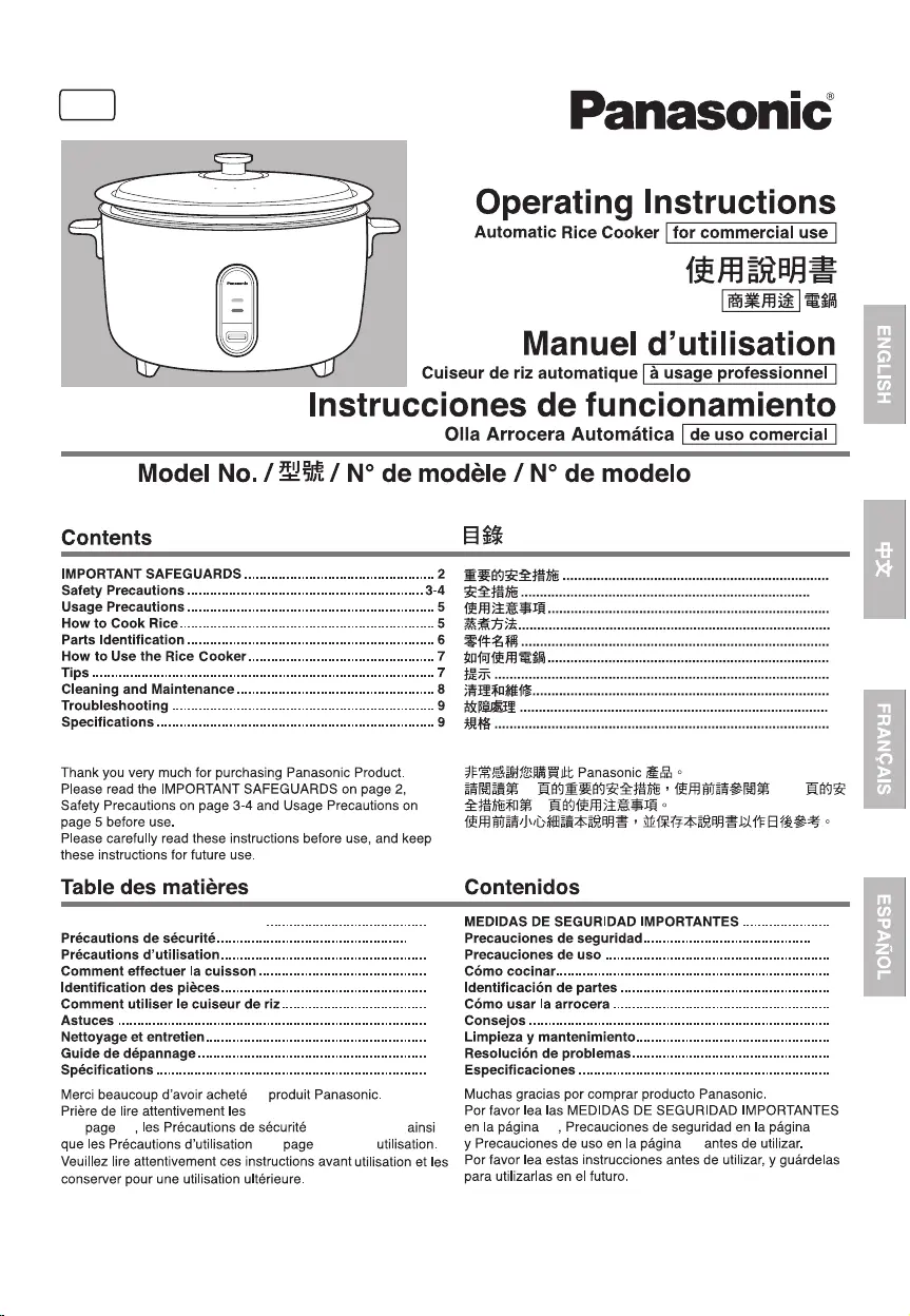 Hier is de Panasonic SR-GA541 (Rijstkoker) gebruikershandleiding. 36 pagina's in taal met een gewicht van 4,462,580.0 Mb. Als u geen antwoorden op uw probleem kunt vinden Vraag het onze community.