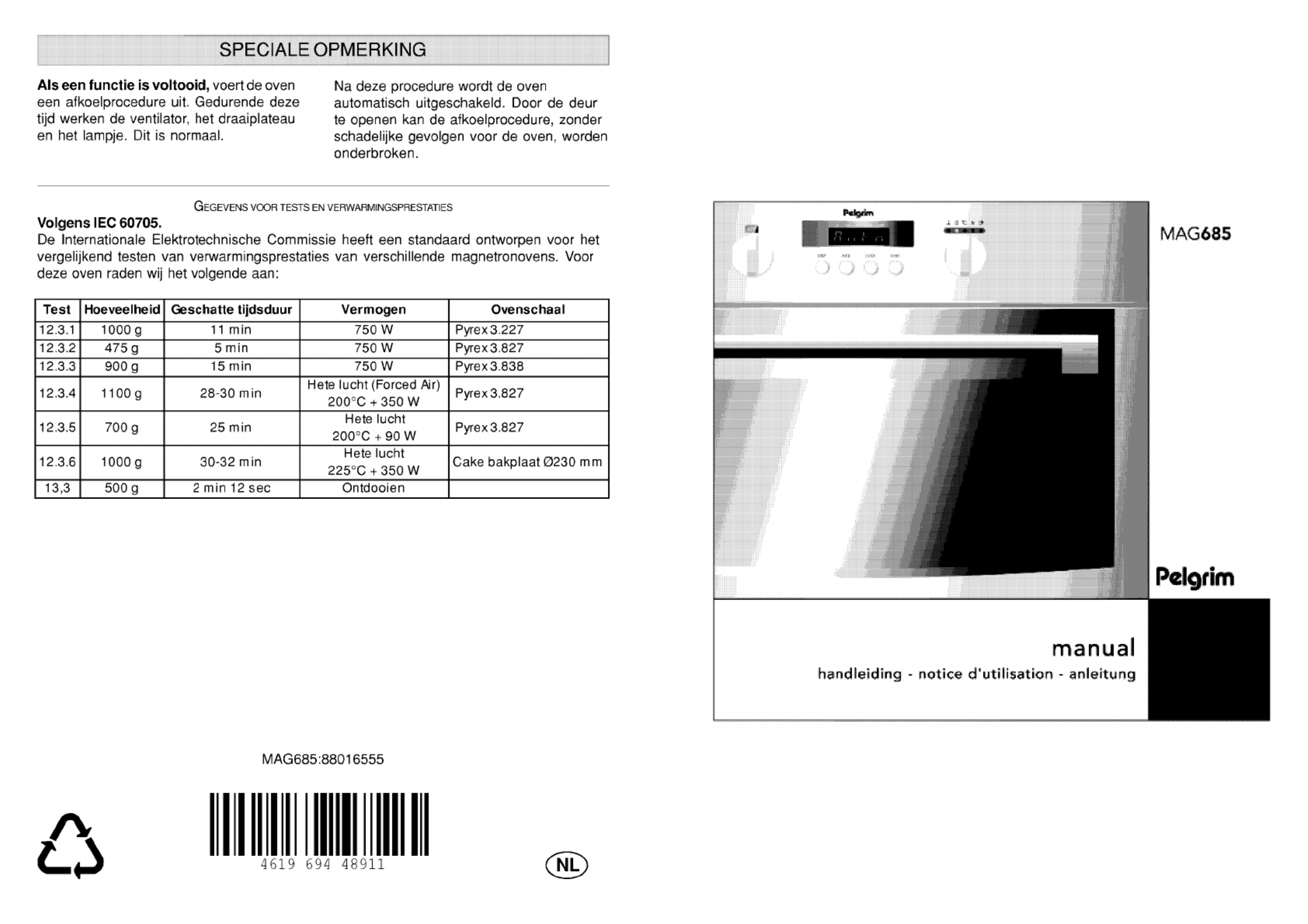 Hier is de Pelgrim MAG685RVS (Magnetron) gebruikershandleiding. 20 pagina's in taal - met een gewicht van 2.0 Mb. Als u geen antwoorden op uw probleem kunt vinden Vraag het onze community.
