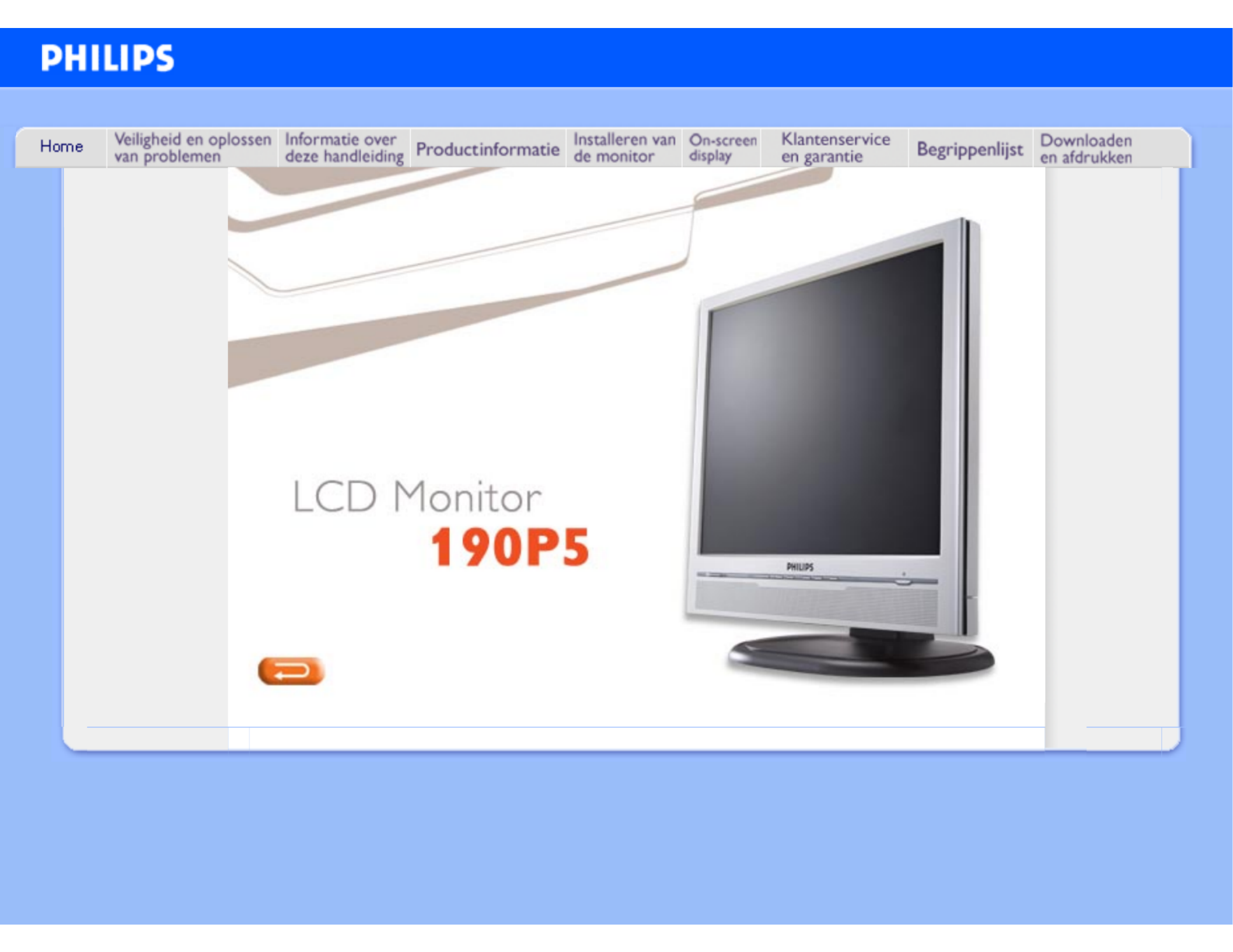 Hier is de Philips 190P5 (Monitor) gebruikershandleiding. 97 pagina's in taal Nederlands met een gewicht van 8.4 Mb. Als u geen antwoorden op uw probleem kunt vinden Vraag het onze community.