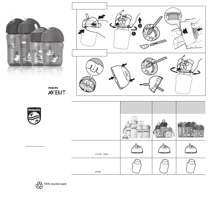 • Víčko a hlavní část hrnečku s brčkem lze kombinovat s lahvemi Philips