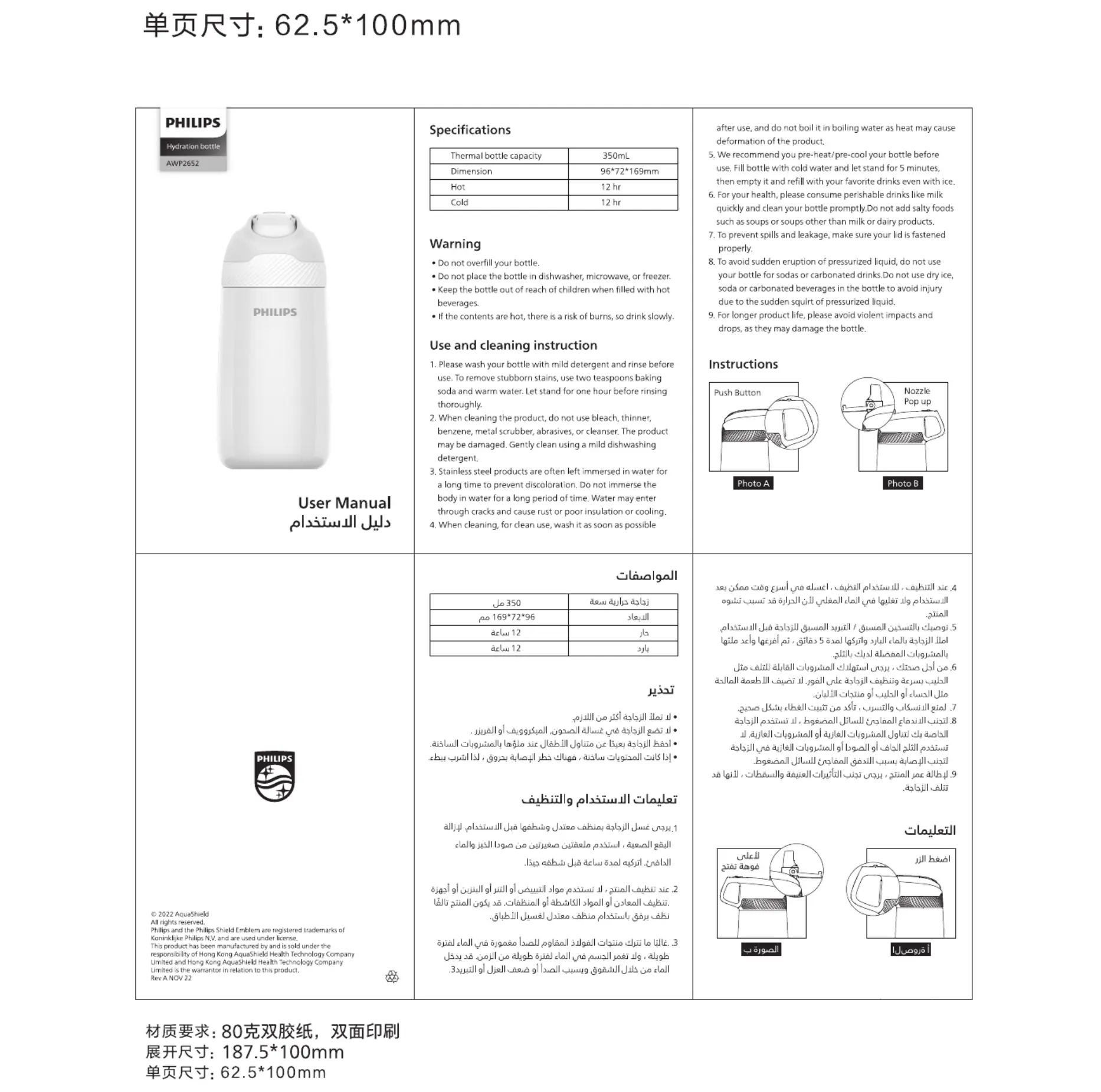 Hier is de Philips AWP2652 (Drinkfles) gebruikershandleiding. 1 pagina's in taal met een gewicht van 218,679.0 Mb. Als u geen antwoorden op uw probleem kunt vinden Vraag het onze community.
