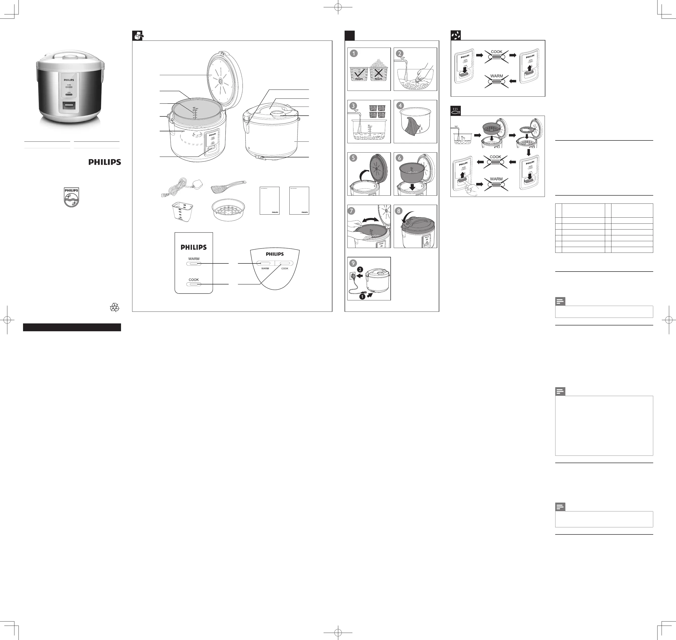 Hier is de Philips Daily Collection HD3012 (Rijstkoker) gebruikershandleiding. 2 pagina's in taal Engels met een gewicht van 1,210,540.0 Mb. Als u geen antwoorden op uw probleem kunt vinden Vraag het onze community.