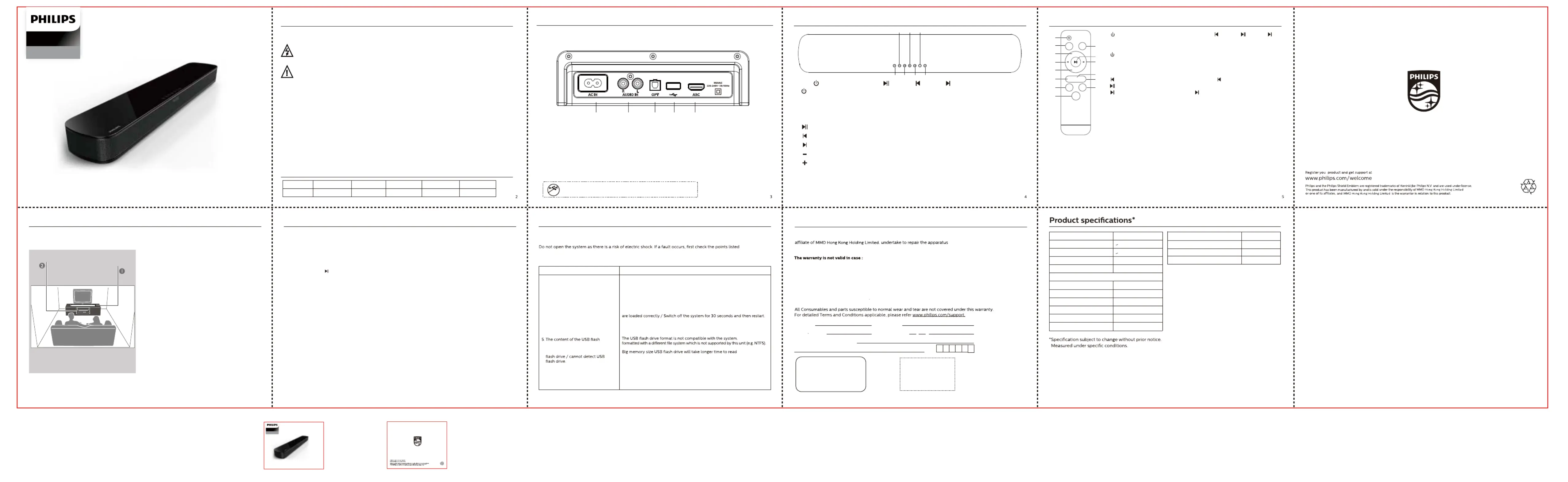 This Philips soundbar is warranted against any defect due to defective materials or workmanship for 12 months