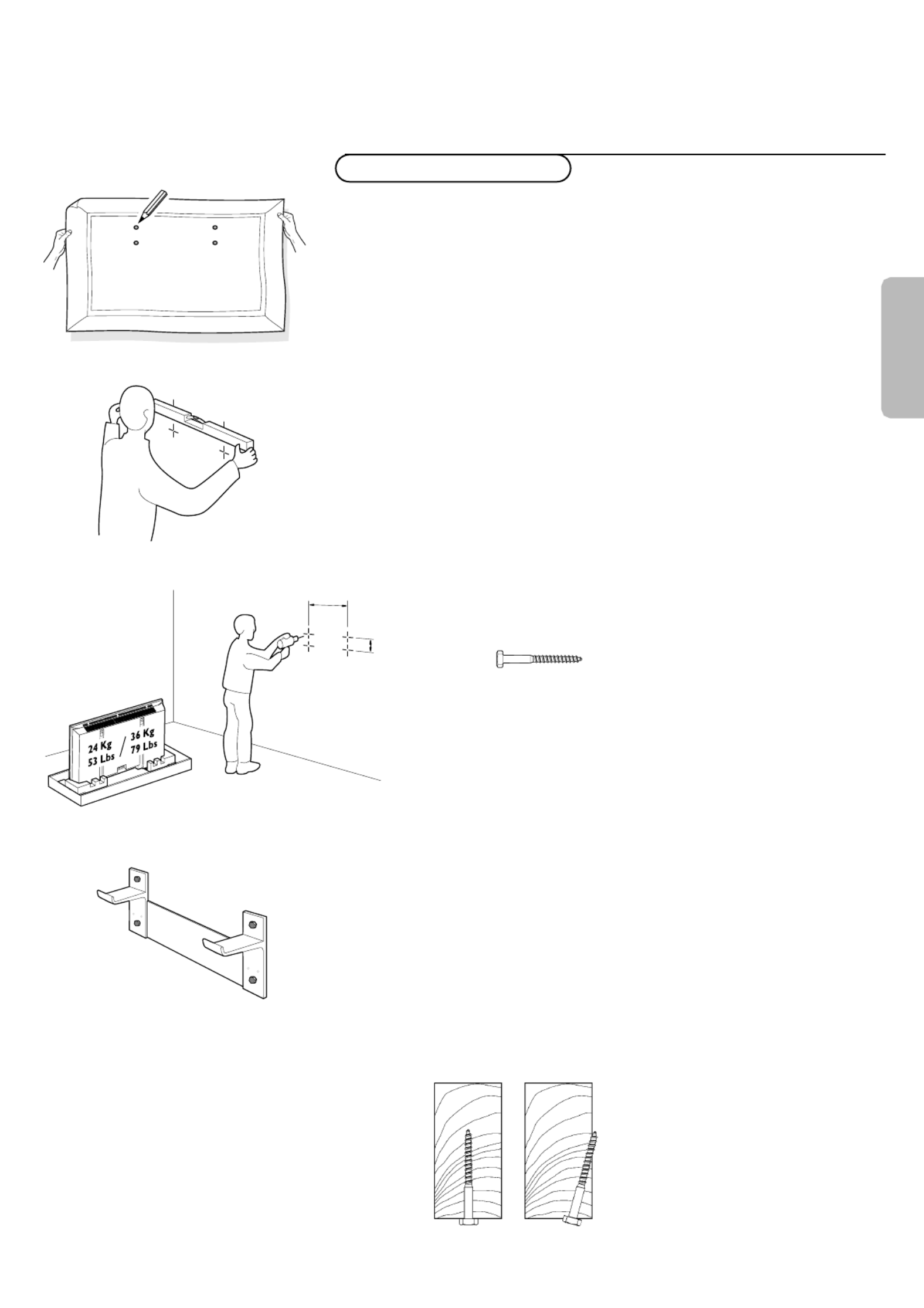 ‘Reposition the Wall Bracket, and with four lag bolts (fig. 4), secure