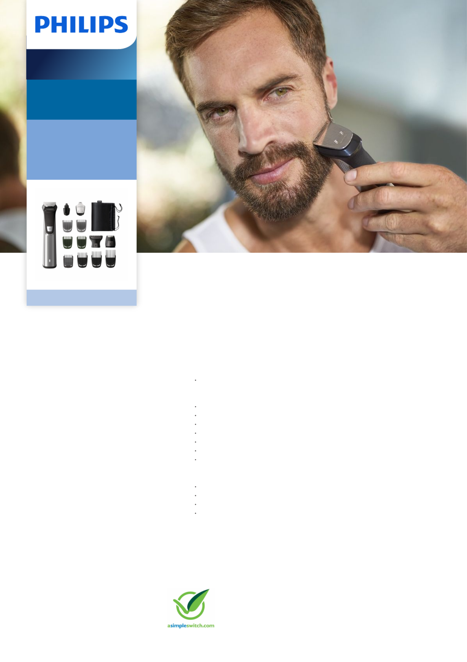 Hier is de Philips MG7745 (Baardtrimmer) gebruikershandleiding. 3 pagina's in taal Nederlands met een gewicht van 2.3 Mb. Als u geen antwoorden op uw probleem kunt vinden Vraag het onze community.