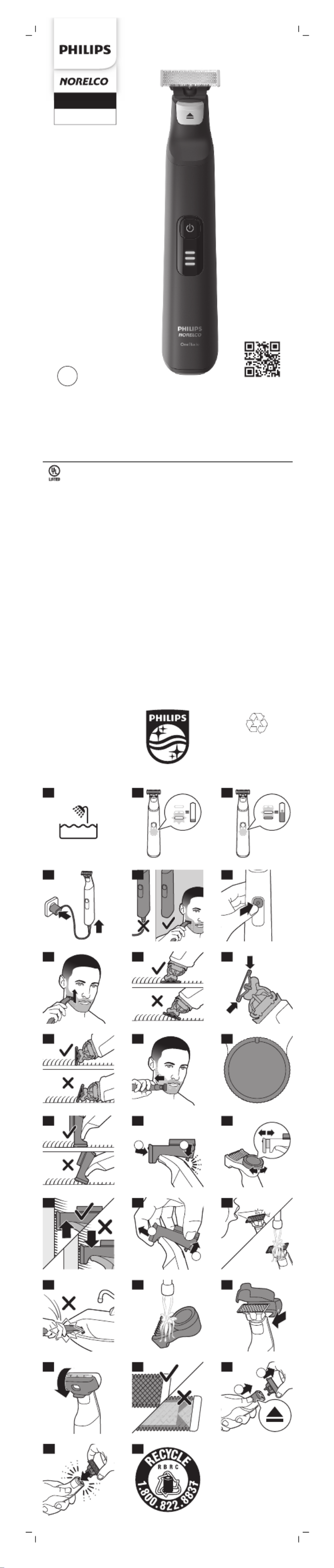 Hier is de Philips Oneblade Pro QP6530 (Scheerapparat) gebruikershandleiding. 7 pagina's in taal Engels met een gewicht van 0.7 Mb. Als u geen antwoorden op uw probleem kunt vinden Vraag het onze community.
