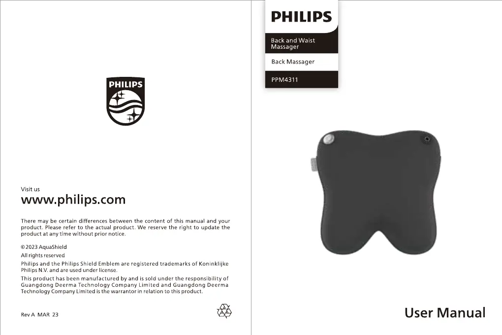 Hier is de Philips PPM4311 (Massage apparaat) gebruikershandleiding. 25 pagina's in taal met een gewicht van 1,671,160.0 Mb. Als u geen antwoorden op uw probleem kunt vinden Vraag het onze community.