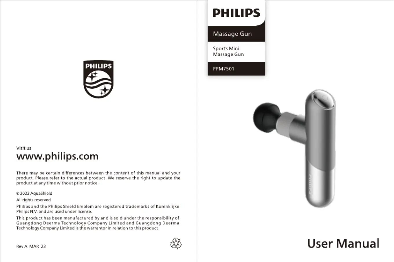 Hier is de Philips PPM7501 (Massage apparaat) gebruikershandleiding. 20 pagina's in taal met een gewicht van 1,221,920.0 Mb. Als u geen antwoorden op uw probleem kunt vinden Vraag het onze community.
