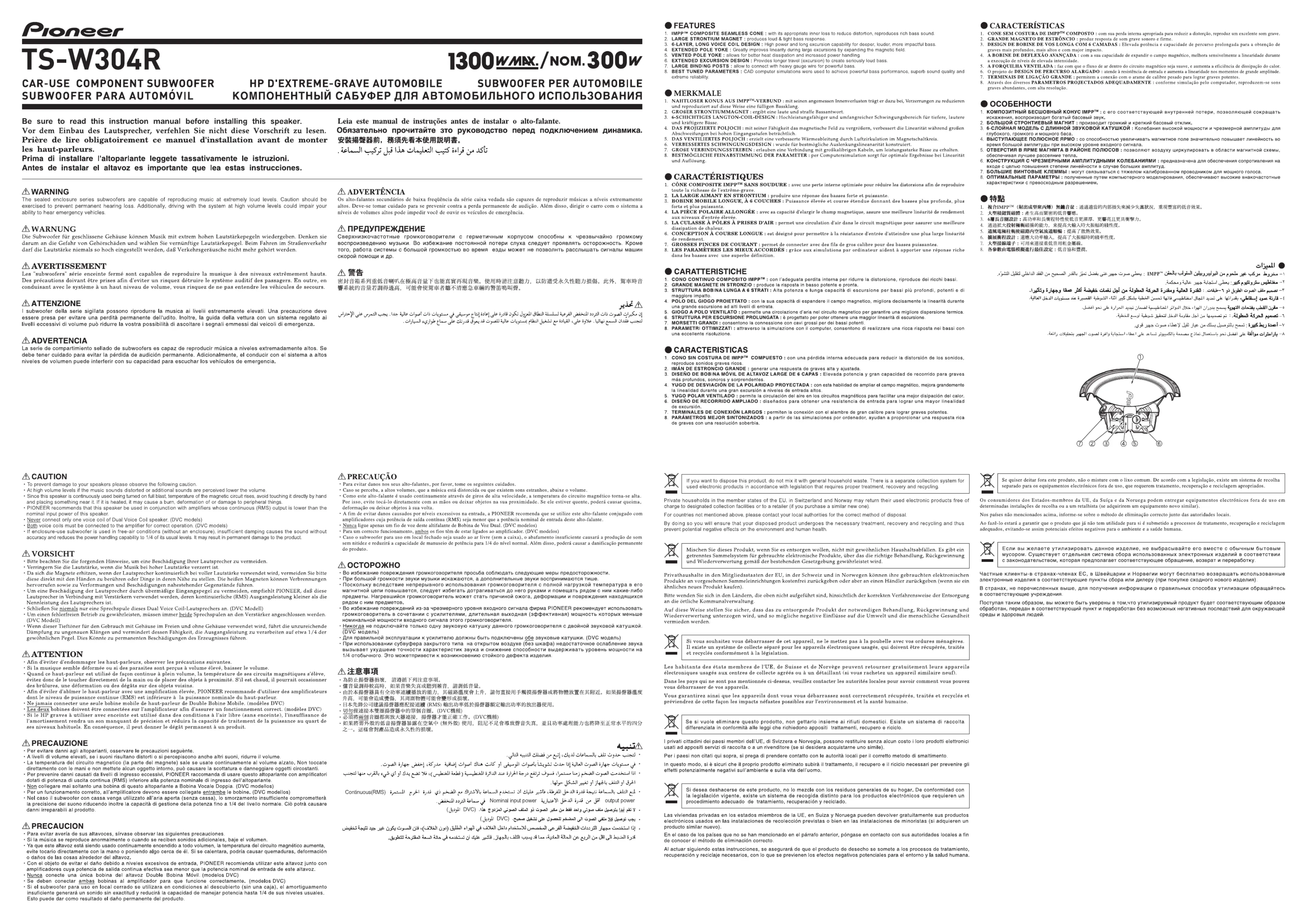 Hier is de Pioneer TS-W304R (Subwoofer) gebruikershandleiding. 2 pagina's in taal met een gewicht van 1,602,080.0 Mb. Als u geen antwoorden op uw probleem kunt vinden Vraag het onze community.