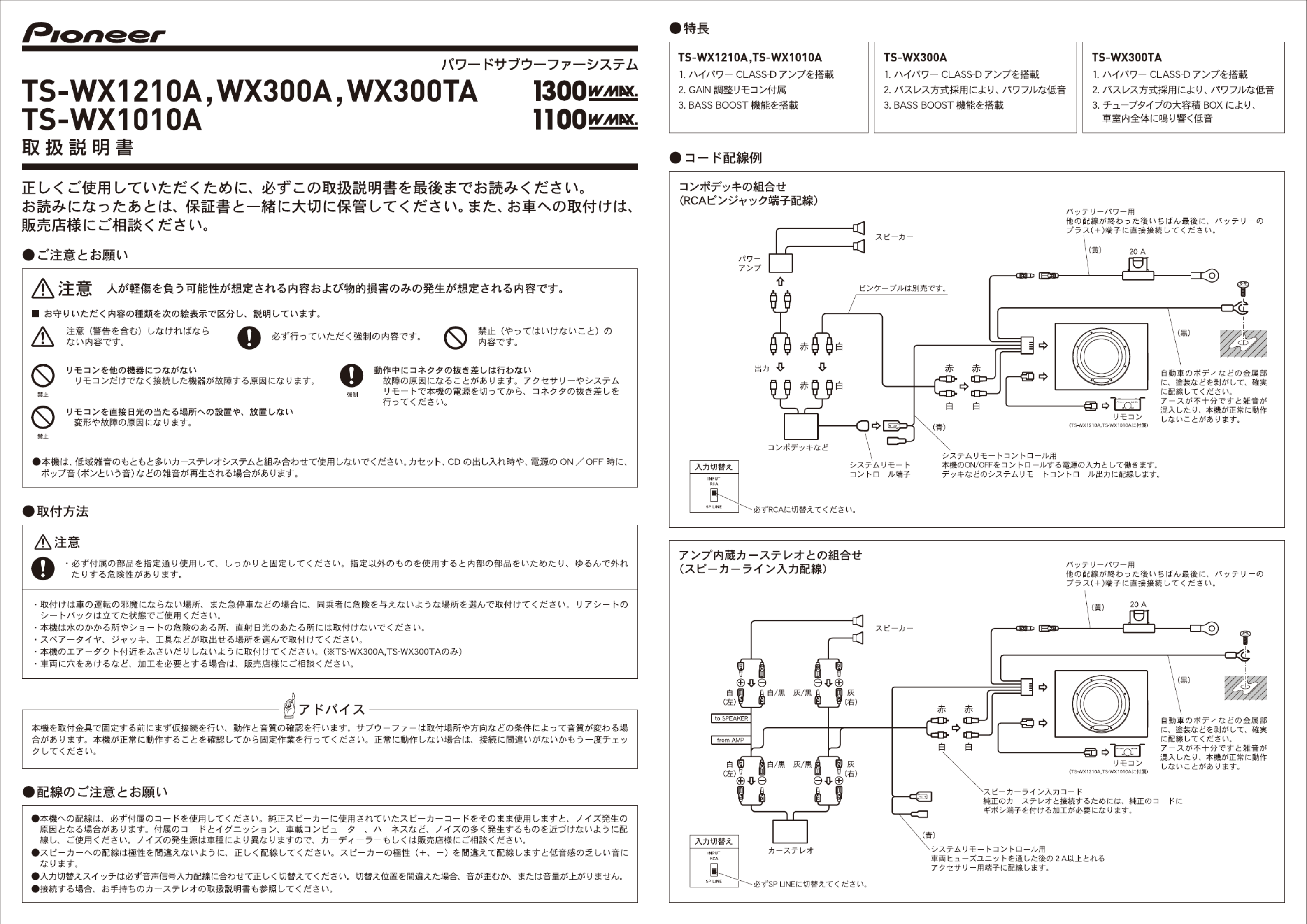 Hier is de Pioneer TS-WX300TA (Autospeaker) gebruikershandleiding. 4 pagina's in taal - met een gewicht van 0.8 Mb. Als u geen antwoorden op uw probleem kunt vinden Vraag het onze community.