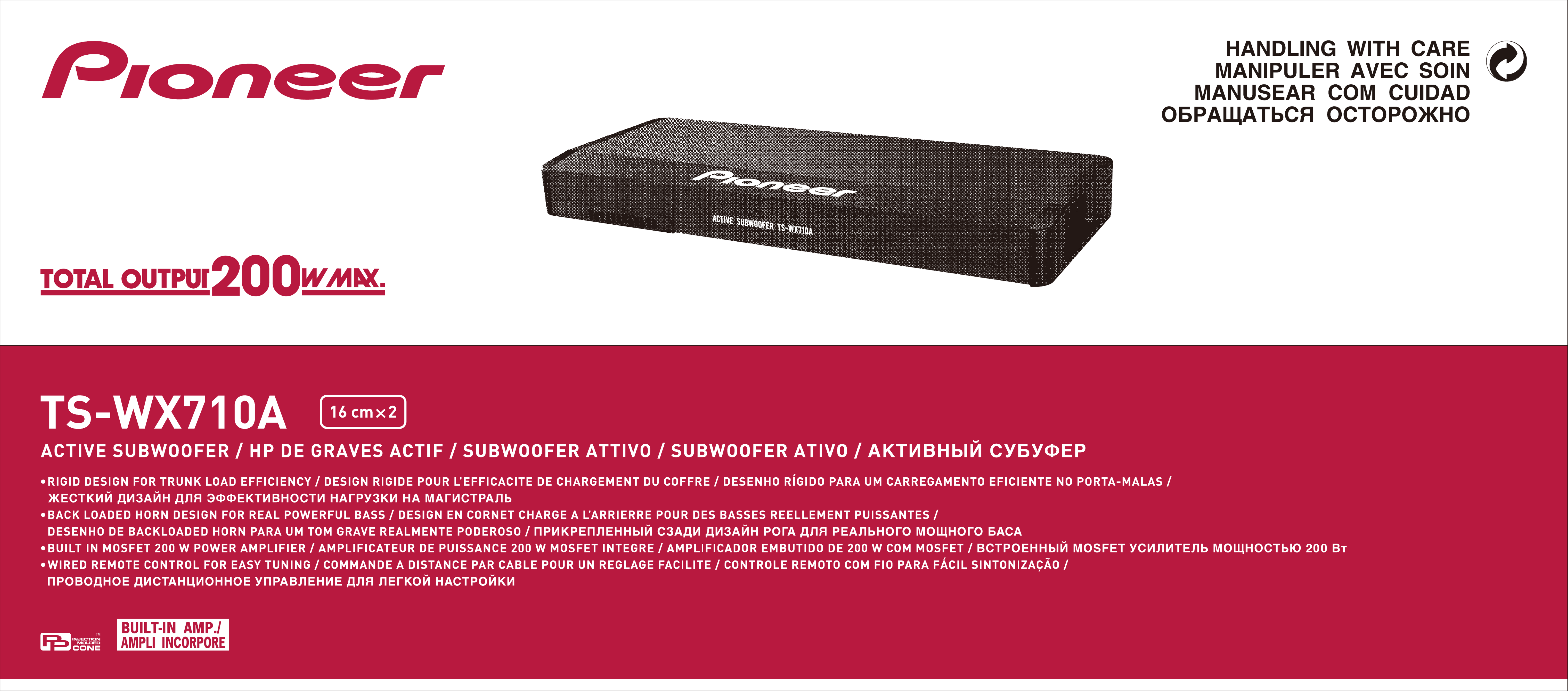 Hier is de Pioneer TS-WX710A (Autospeaker) gebruikershandleiding. 12 pagina's in taal Engels met een gewicht van 1.6 Mb. Als u geen antwoorden op uw probleem kunt vinden Vraag het onze community.