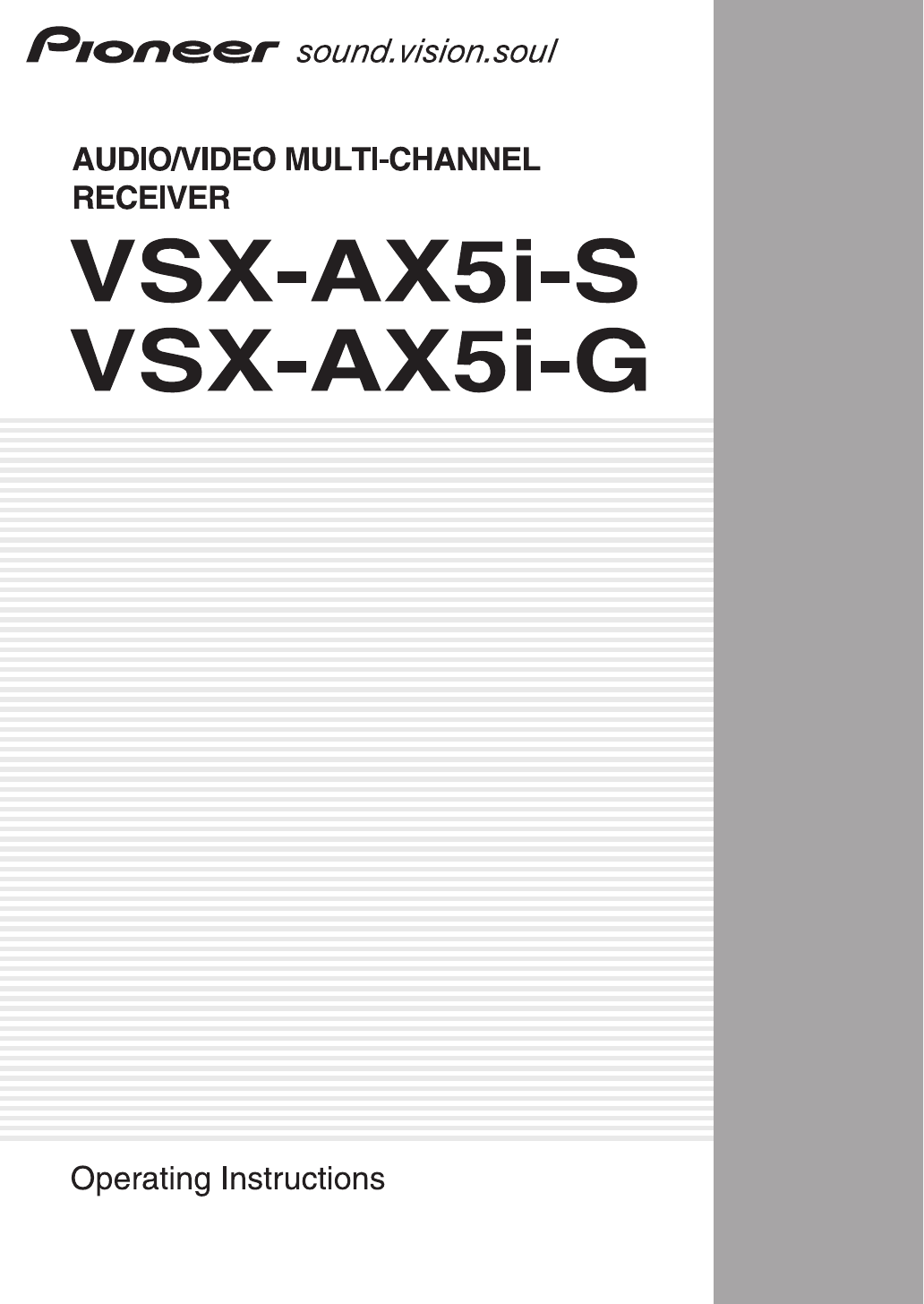 Hier is de Pioneer VSX-AX5i-S (AV-Receiver) gebruikershandleiding. 119 pagina's in taal Engels met een gewicht van 4.1 Mb. Als u geen antwoorden op uw probleem kunt vinden Vraag het onze community.