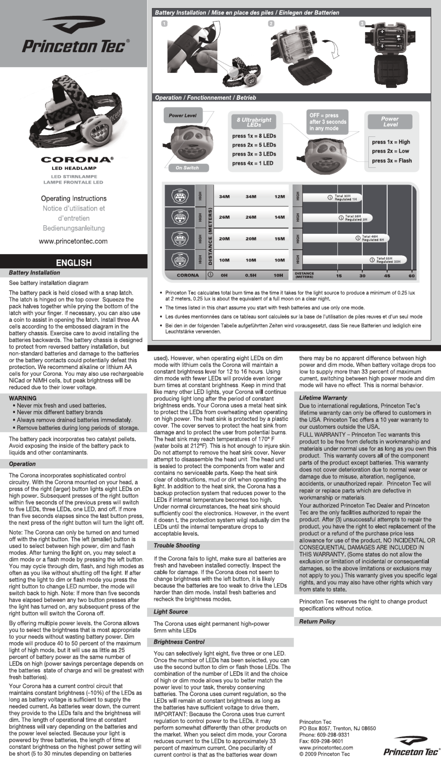 Princeton Tec Corona Handleiding