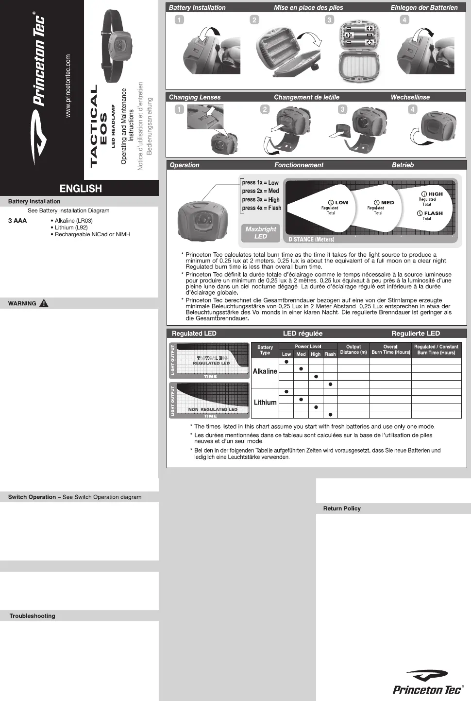 Princeton Tec EOS Tactical Handleiding