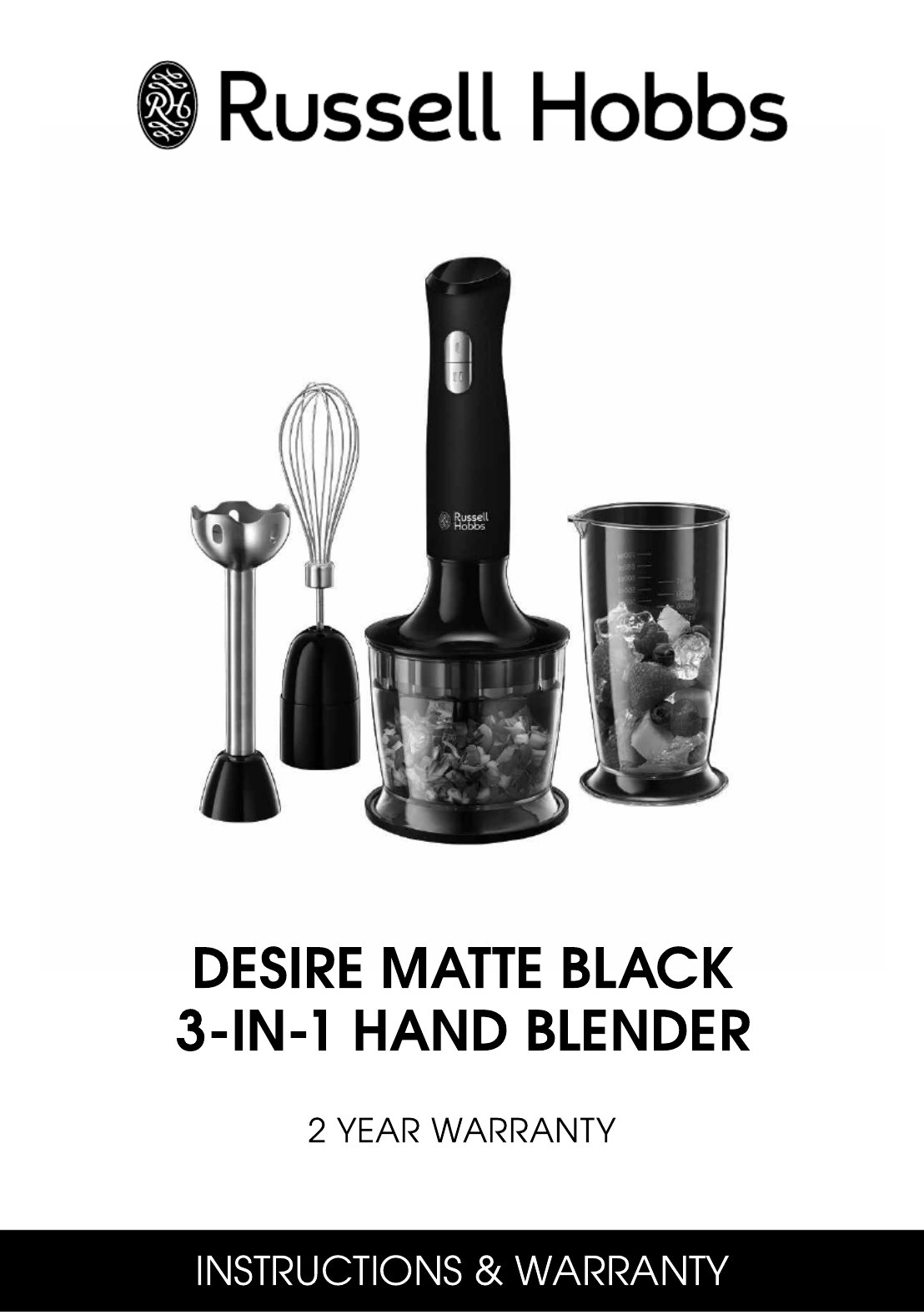 Hier is de Russell Hobbs Desire Matte Black RHSM5BLK (Blender) gebruikershandleiding. 16 pagina's in taal Engels met een gewicht van 0.7 Mb. Als u geen antwoorden op uw probleem kunt vinden Vraag het onze community.