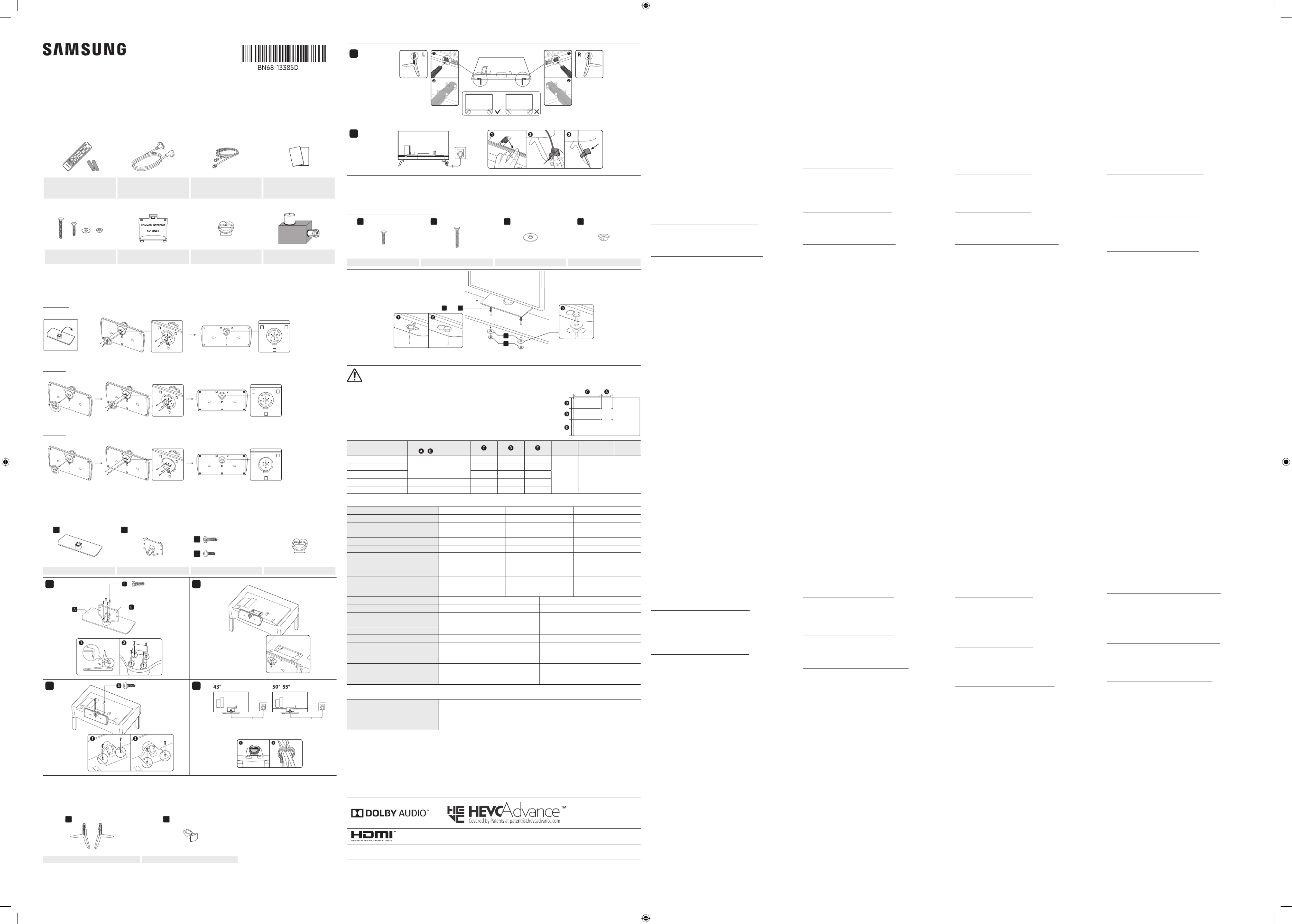 Assembling the Stand and Components (43″-55″)