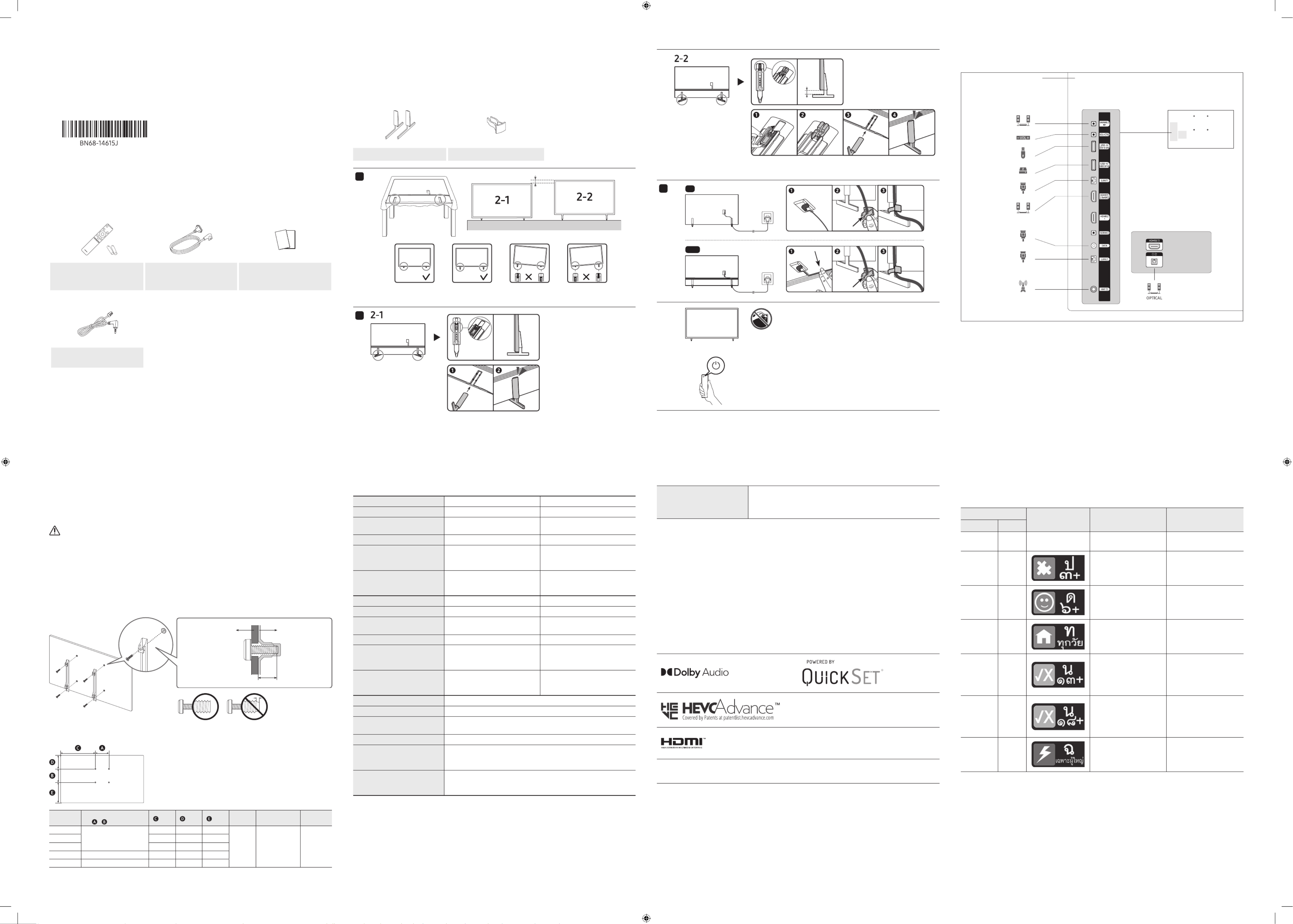 •Samsung is not liable for product damage or personal injury when a non-VESA or non-specified wall mount is used or when the
