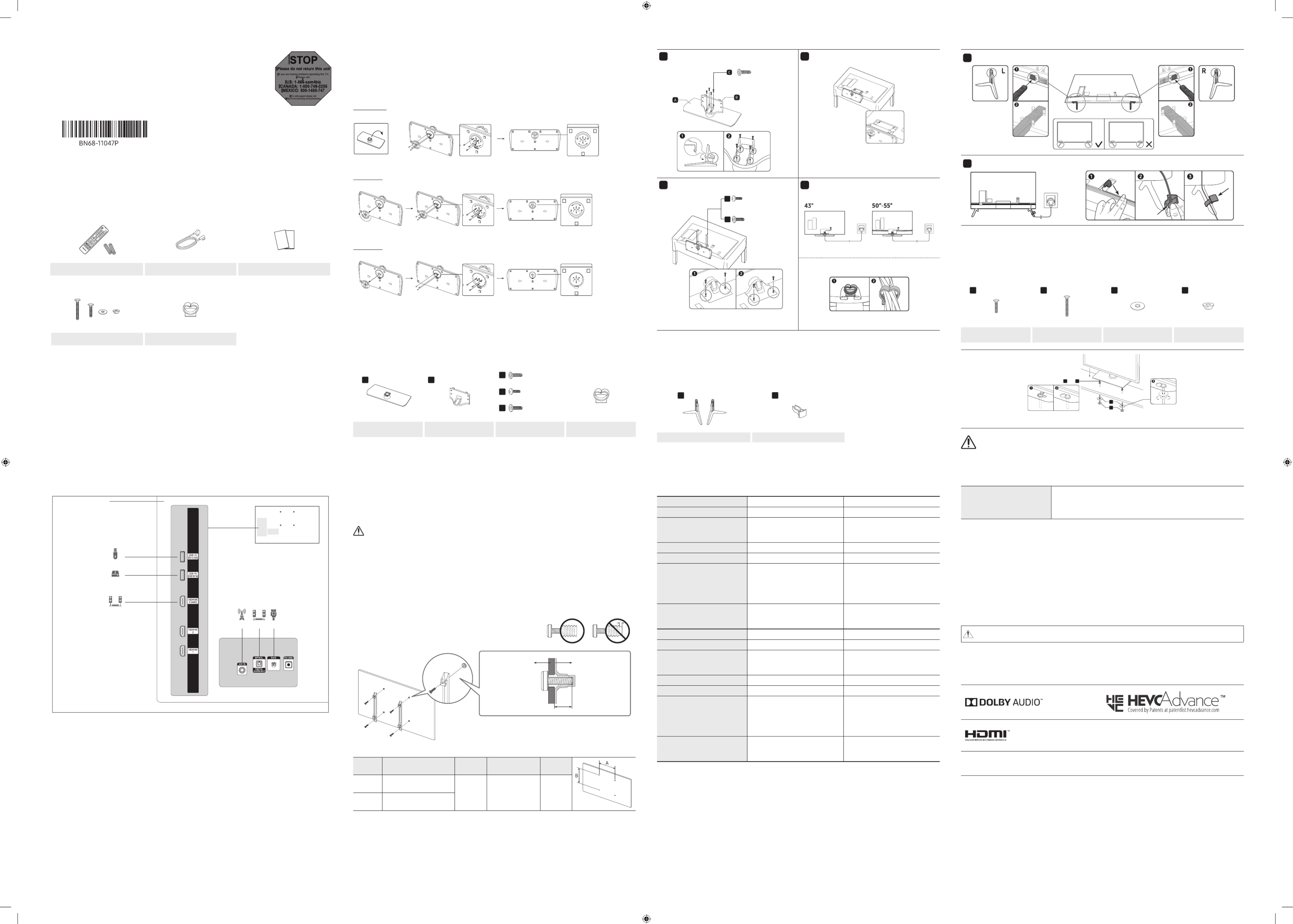 Assembling the Stand and Components (43″-55″)