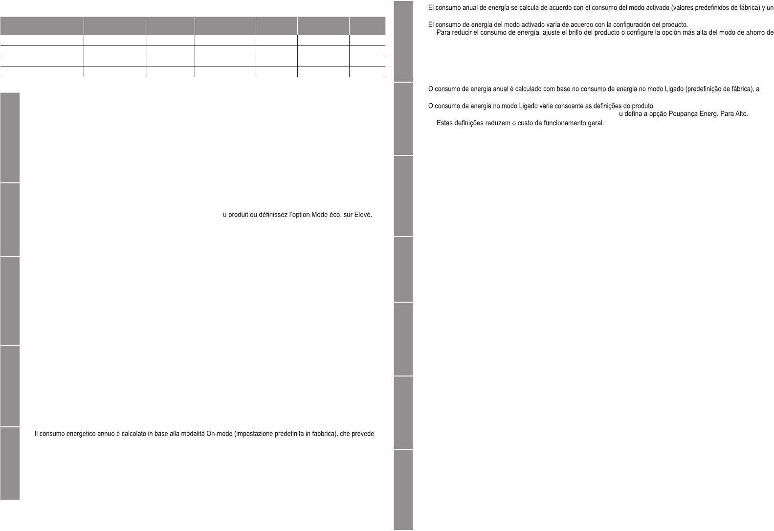– Per ridurre i consumi, regolare la luminosità del prodotto oppure impostare la funzione Risp. energia su Alto.
