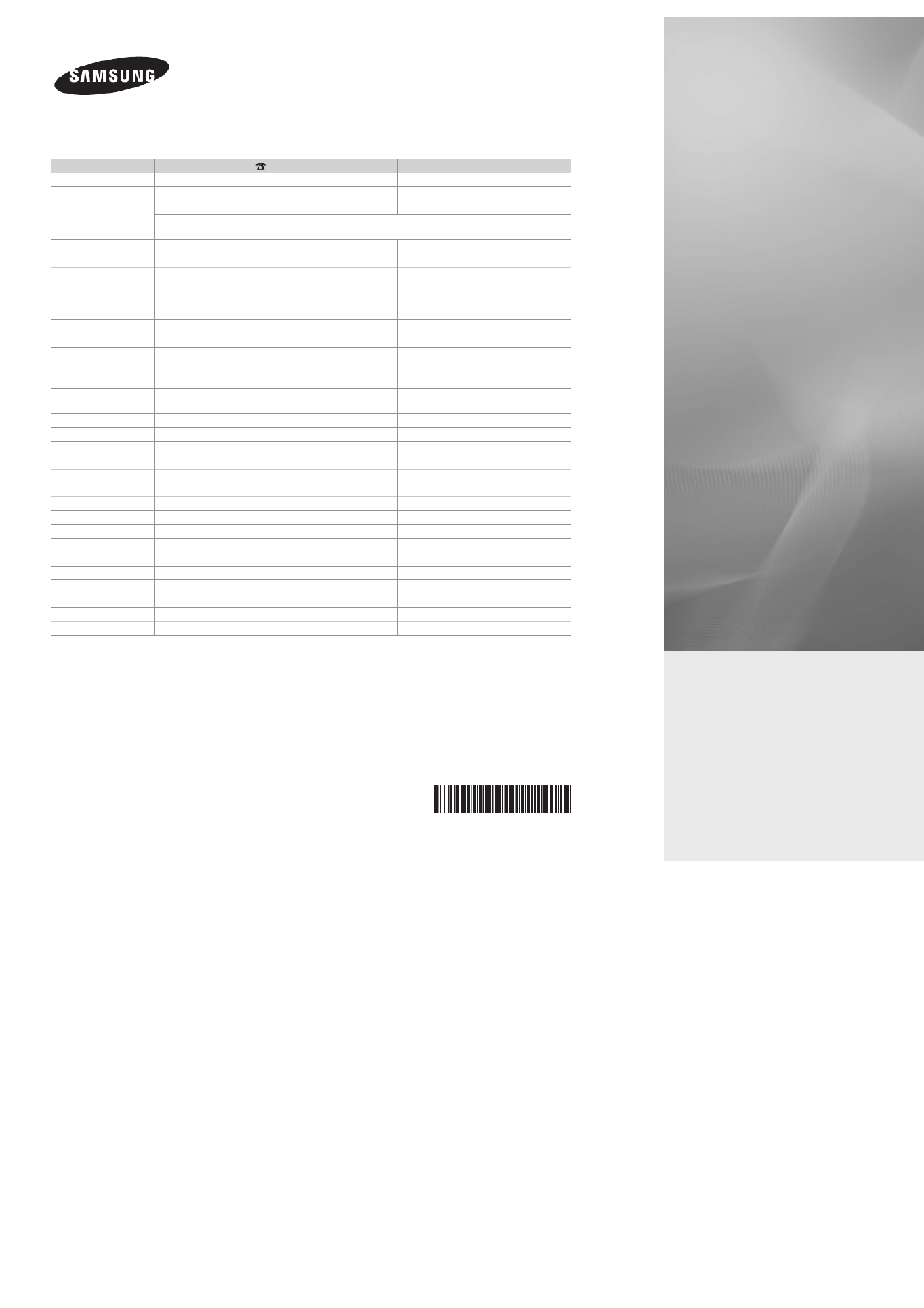 SLOVAKIA www.samsung.com/sk 0800-SAMSUNG (726-7864)
