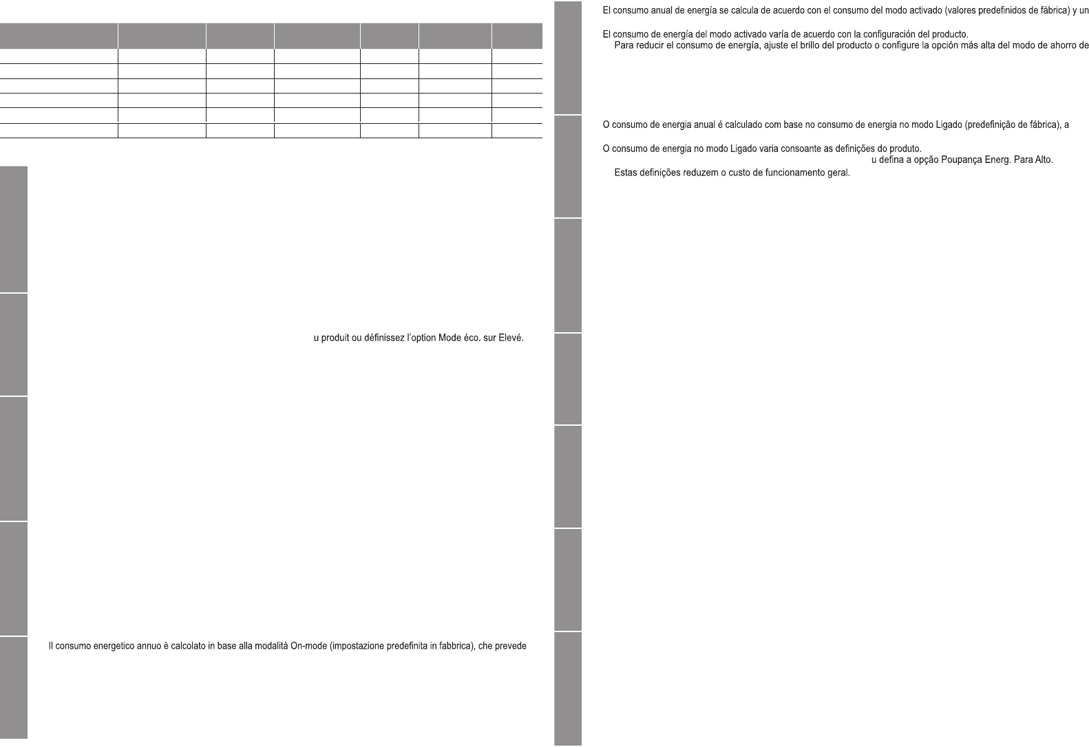 – Per ridurre i consumi, regolare la luminosità del prodotto oppure impostare la funzione Risp. energia su Alto.