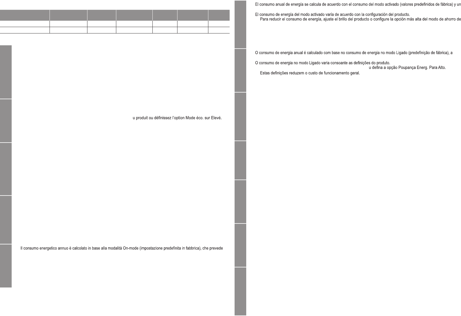 – Per ridurre i consumi, regolare la luminosità del prodotto oppure impostare la funzione Risp. energia su Alto.